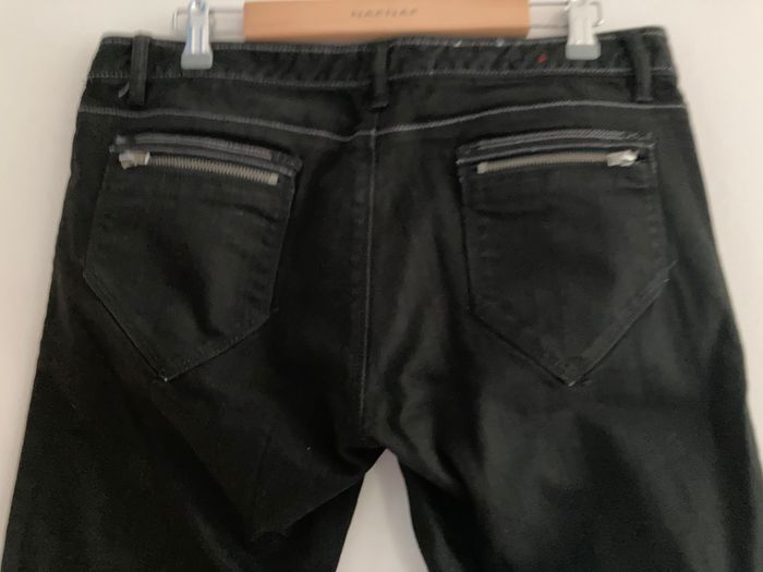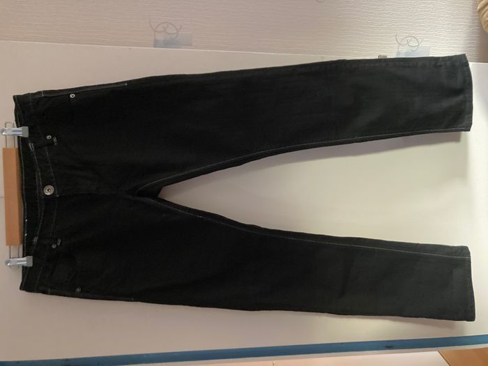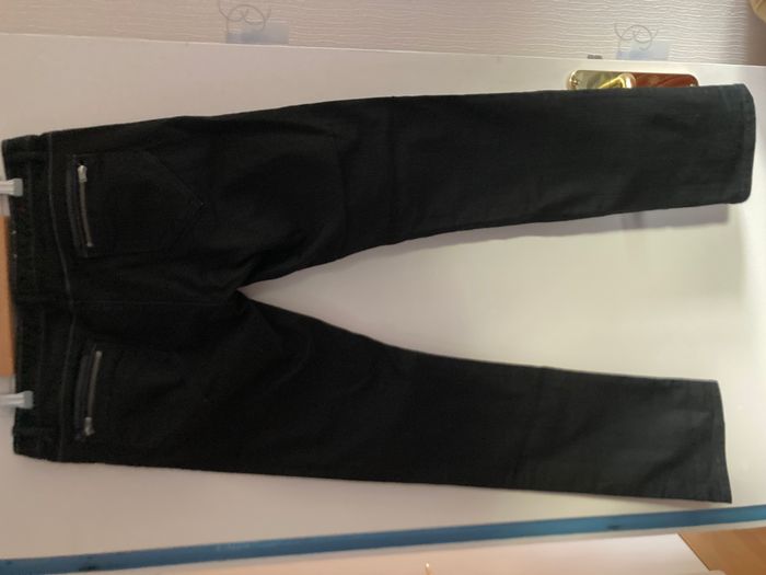 Jean noir Kiabi Woman, taille 42. Deux poches zippées derrière. Largeur taille 43 cm. Longueur entrejambe jusqu'en bas 84 cm, entrejambe jusqu'en haut 21 cm. Largeur en bas 19cm.