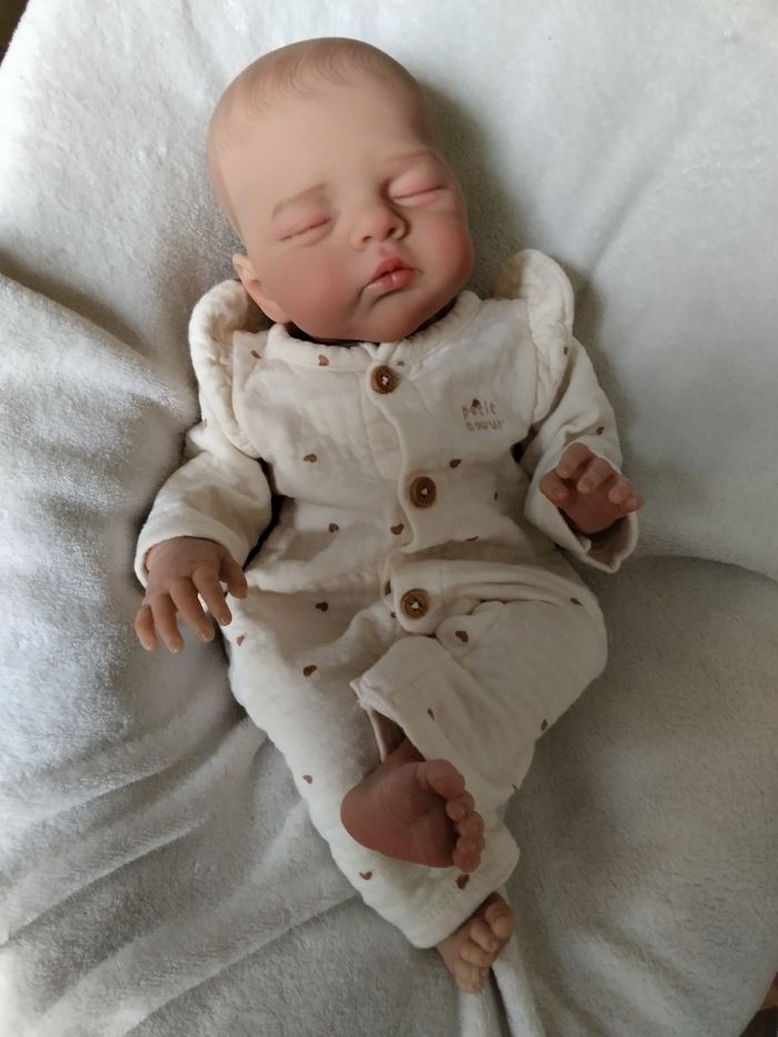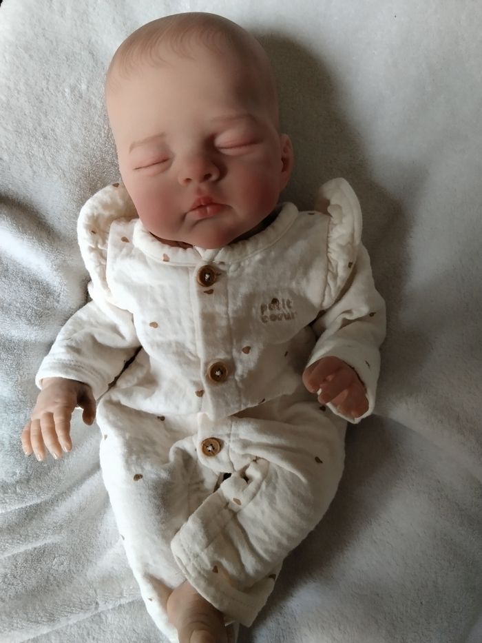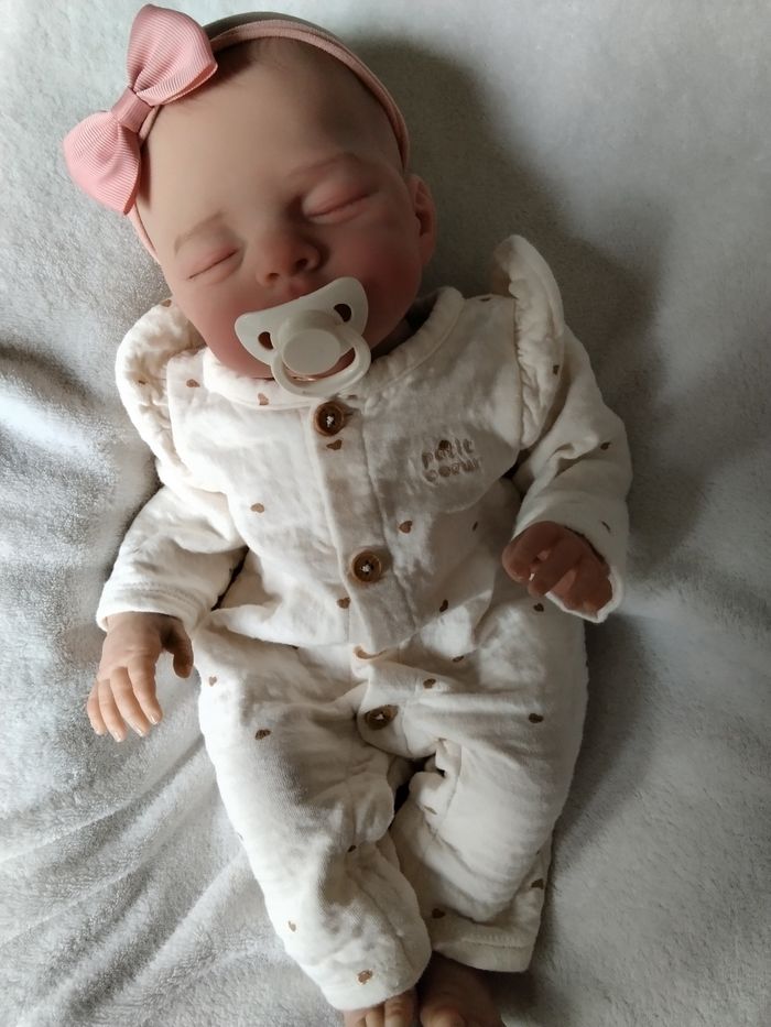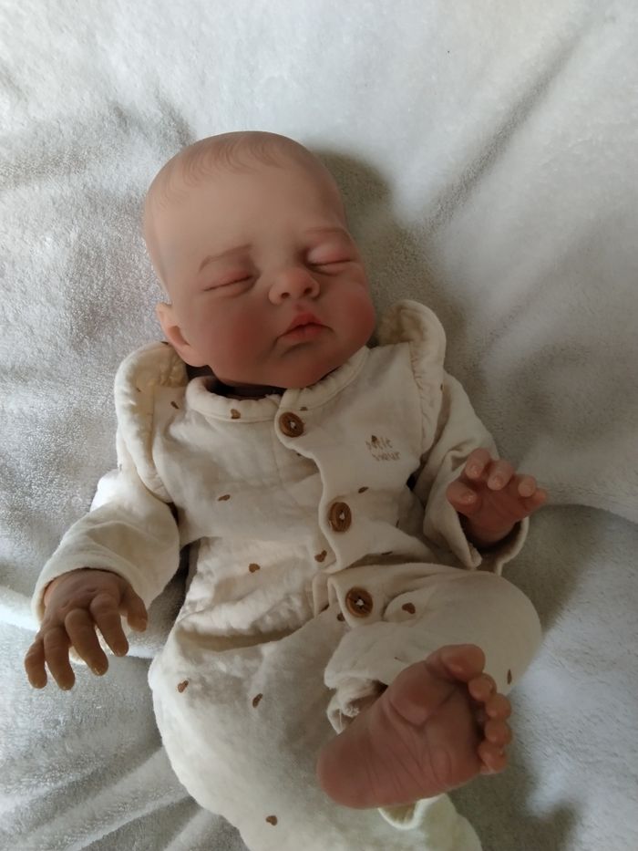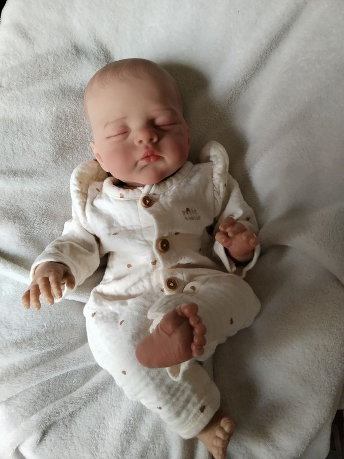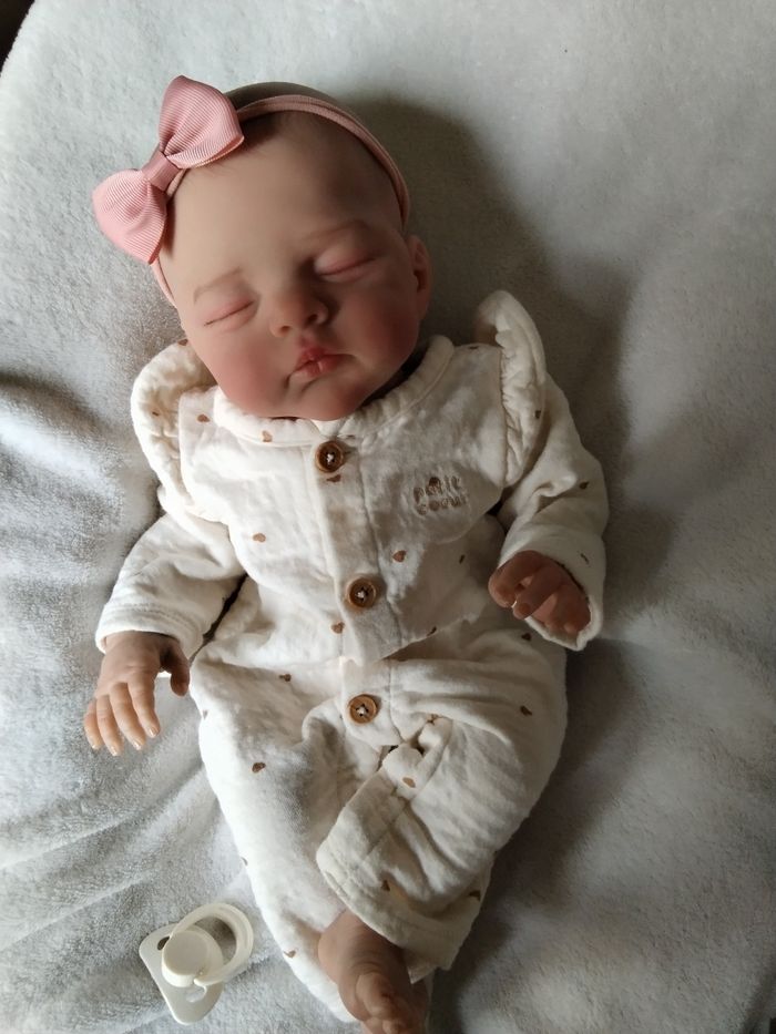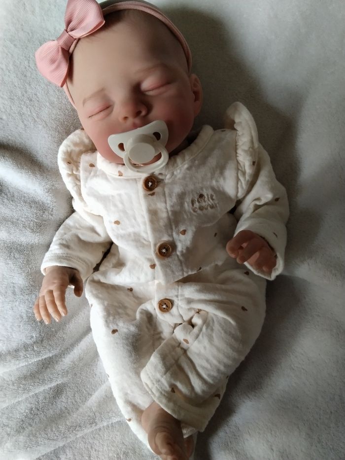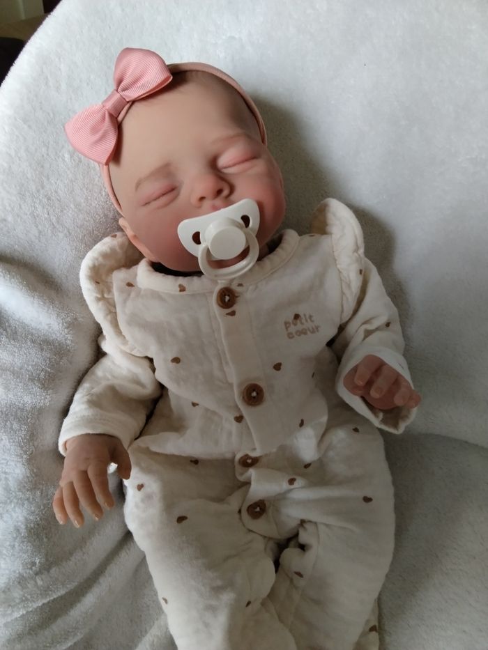 Bébé reborn de 48 cm pour 2 kilos 110 Sa tête tombe légèrement comme un vrai bébé Son corps est en tissu et ses membres en vinyle Elle s'habille en naissance Elle partira avec les vêtements et accessoires des photos ainsi que son petit trousseau