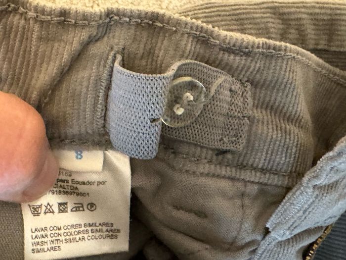 Pantalon en velours fin, réglable à la taille avec élastiques, en excellent état. Deux poches avant, deux poches arrière. Coupe slim. Couleur grise qui tire vers le vert. Fabriqué au Portugal. 📏 Taille : 8 ans 🚚 Livraison : Envoi via Mondial Relay, Colissimo ou autres transporteurs proposés par la plateforme. 🤝 Remise en main propre possible à Combs-la-Ville Si vous avez des questions ou souhaitez d’autres photos, n’hésitez pas à me contacter. D’autres articles disponibles, n’hésitez pas à faire un lot ! ☺️