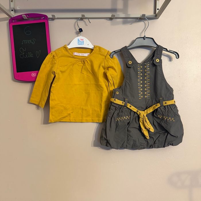 Jolie robe grise et son maillot longues manches fin couleur moutarde Taille 6mois Très bon état #vetements6moisfille #tresbonetat #robe #maillotlonguesmanches #ensemblebébé