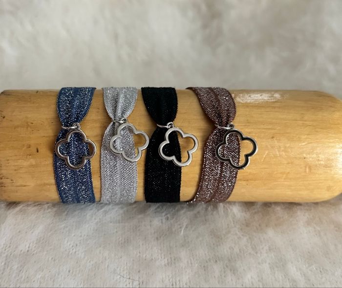 Bracelet en tissu trèfle argenté en acier inoxydable ‼️3€ LE BRACELET ‼️ Bracelet à taille réglable Fait par mes mains Envoie en 48h maximum Emballage propre et soigné