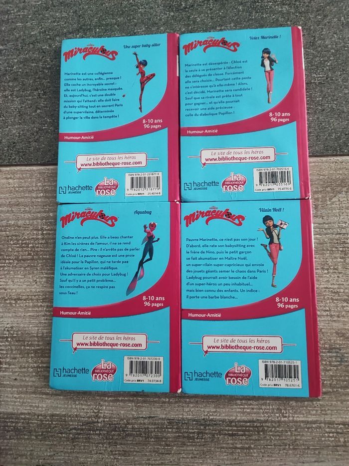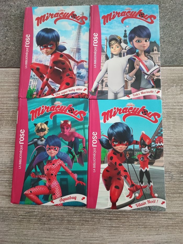 Lot de 4 livres La bibliothèque rose Miraculous. Tome 1, 9, 15 et 20. Une super baby-sitter Volez Marinette Aquabug Vilain Noël 8/10 ans
