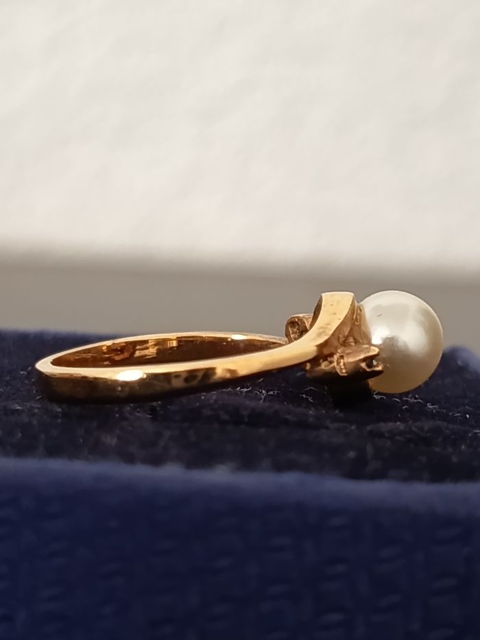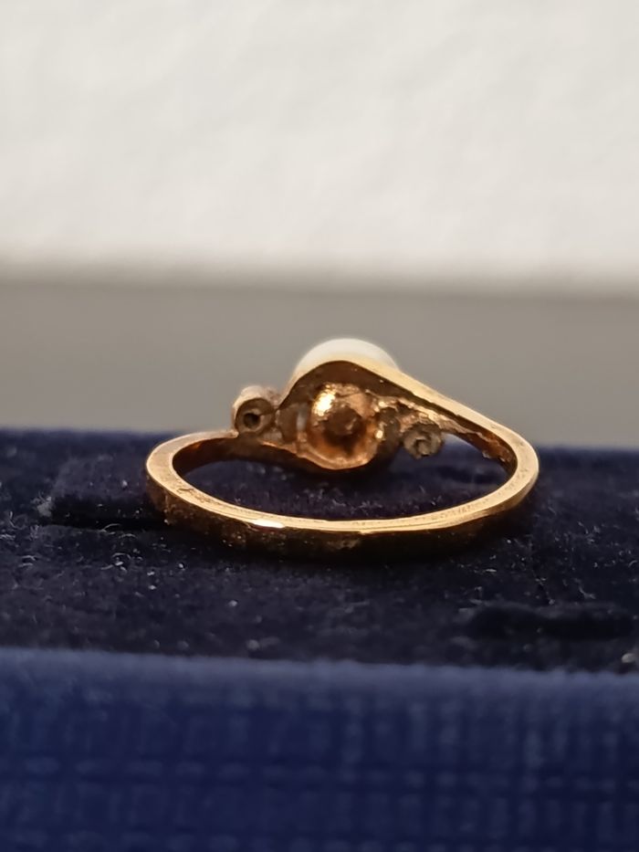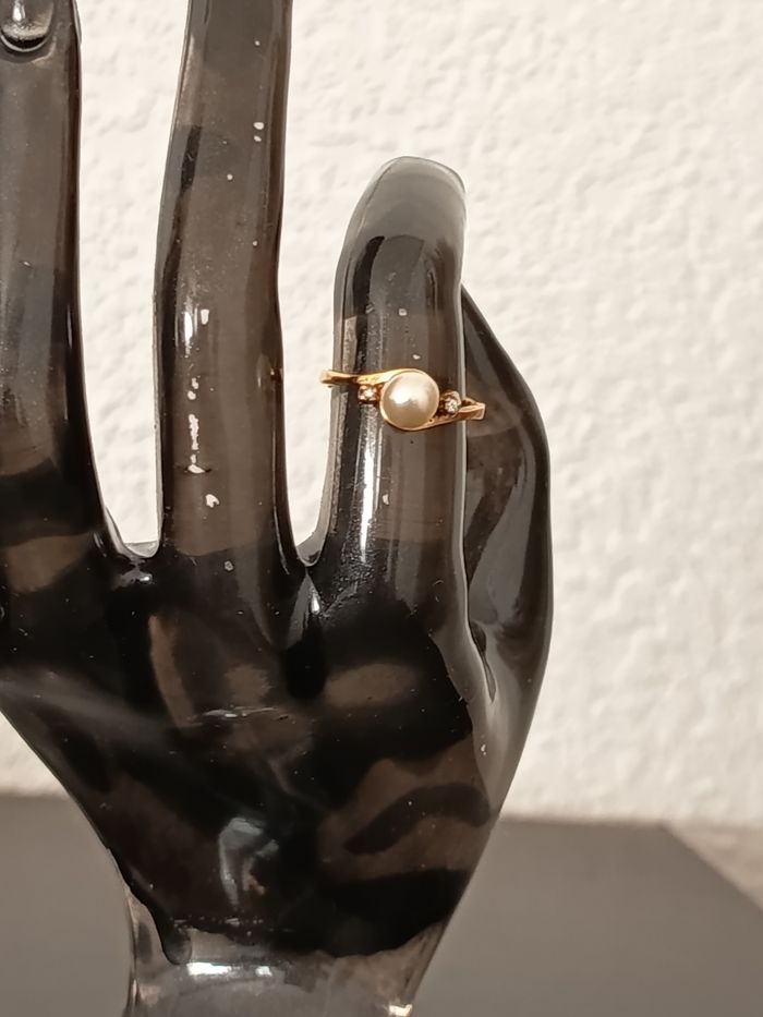 Bague plaqué or ornée d'une perle de culture d eau douce. Poinçon. Taille 50. Très bonne état.