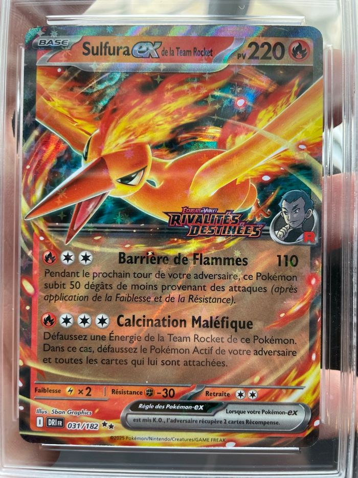 Pokemon carte gradé Sulfura ex de la Team Rocket (xDRI 031) stamp sorti d’upc dracaufeu Rivalités Destinées 031/182 Akatsu grading 9.5 Équivalent ссс / psa / pca / collect aura / sfg / beckett Échange possible contre evolution prismatique 8.5 Ev9 aventure ensemble Ev10 team rocket Mega evolution ME01 Me02 Me2.5