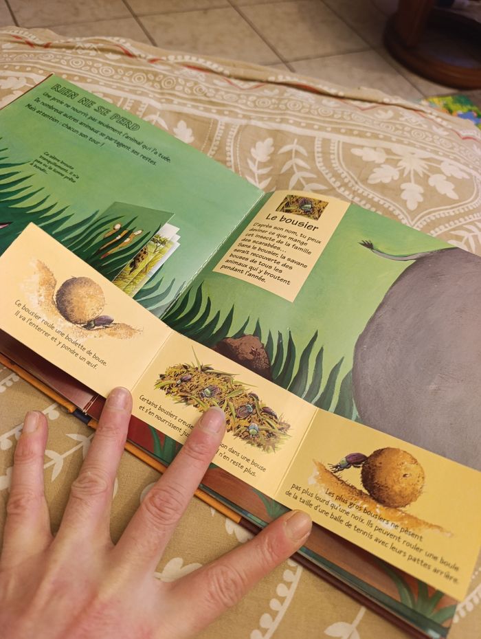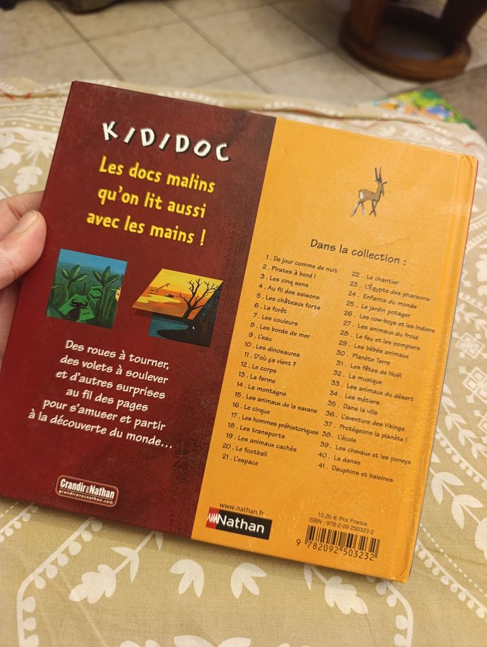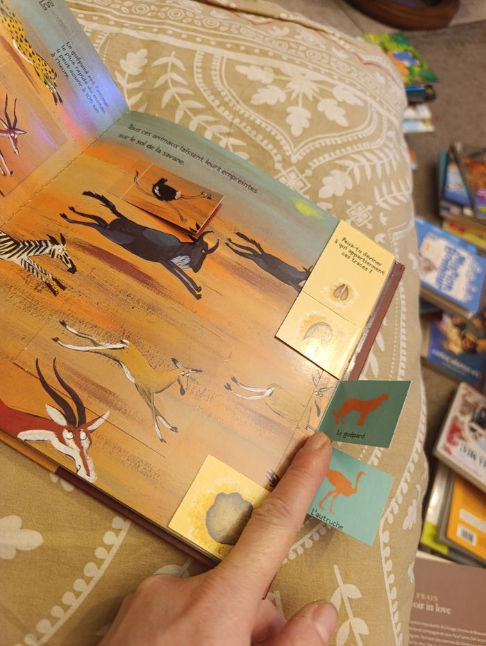 Un Kididoc qui révèle les secrets de la savane avec des animations captivantes ! Des volets à soulever pour trouver à qui appartiennent les traces laissées sur le sol, des pages à déplier pour comprendre comment fonctionne une termitière, et d'autres surprises pour s'aventurer dans la savane et découvrir tous ses mystères. Que font les animaux pendant la saison sèche ? Quels sont les grands troupeaux de la savane ? Qu'appelle-t-on les grandes migrations ? À quoi sert le bousier ? Qu'est ce qu'un prédateur ? Quelles sont leurs techniques de chasse ? Qu'est ce qu'un marigot ? Pour les petits curieux et curieuses de la savane, dès 5 ans.