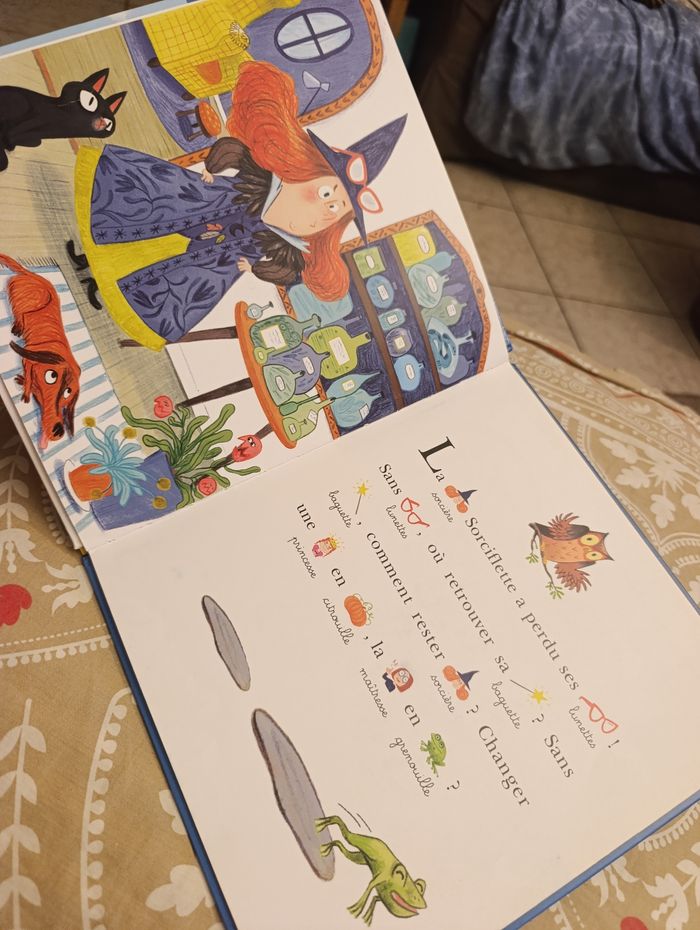Des histoires avec des mots-images pour apprendre à lire en s'amusant À partir de 4 ans Des dessins joyeux et aux couleurs vives, pour une histoire pleine d’humour ! comment retrouver sa baguette ? Et sans baguette, comment changer une princesse en citrouille ou la maîtresse en grenouille… ? La sorcière Sorciflette cherche dans toute sa maison, dans son jardin et même dans les boutiques, interrogeant au passage son hibou et les gens dans la rue… Mais pourquoi les commerçants rient-ils dans son dos ? La sorcière Sorciflette réfléchit, se gratte la tête et… tiens, là, sur sa tête ! Elles étaient là, ses lunettes !
