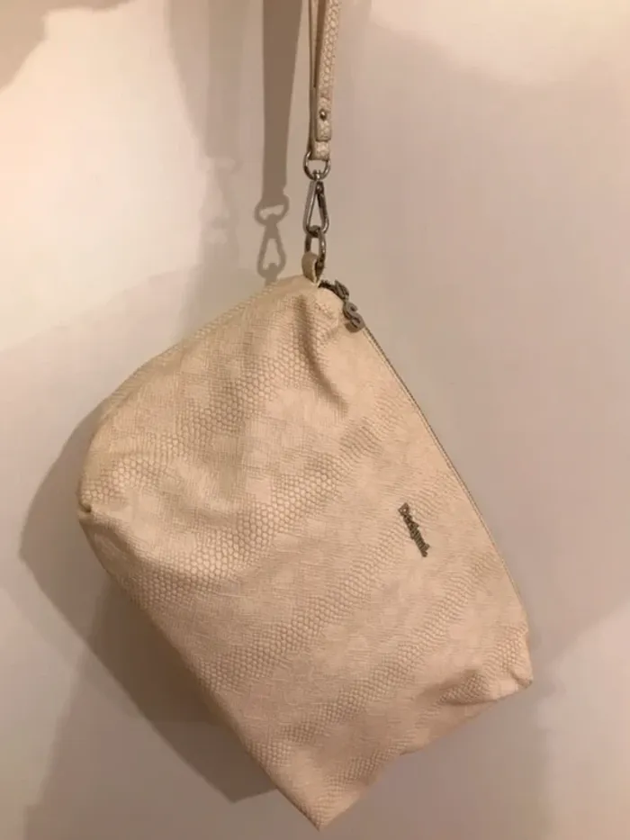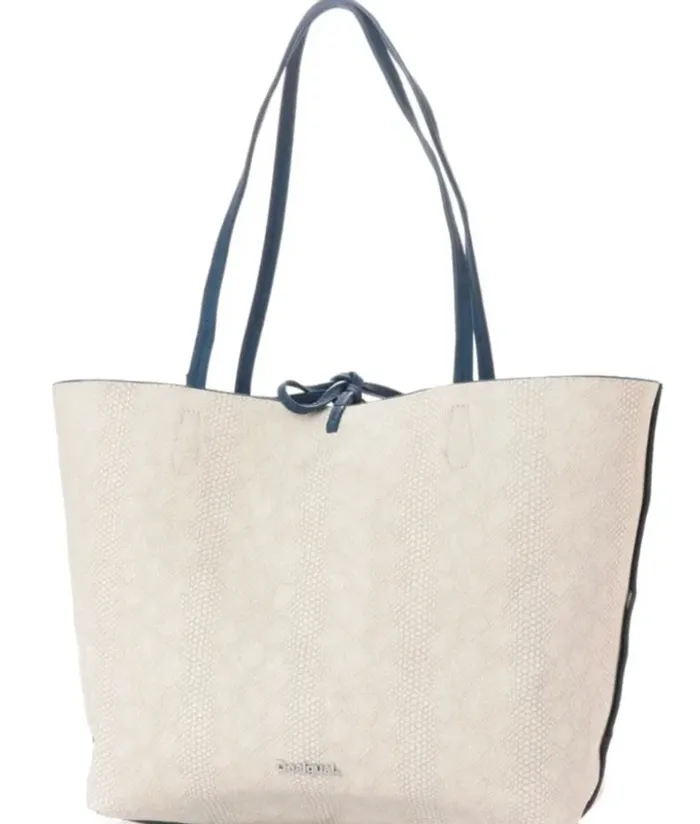 Sac shopper Desigual. Neuf avec une grande pochette beige. La pochette peut se porter en bandoulière (bandoulière amovible) et a plusieurs poches : une poche à l'extérieur et trois poches et un porte-clefs à l'intérieur. Dimensions : Longueur : en bas 30 cm, environ 43 en haut Hauteur 29 Largeur 13 cm