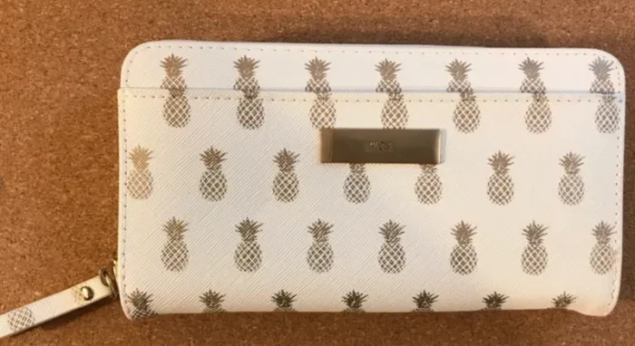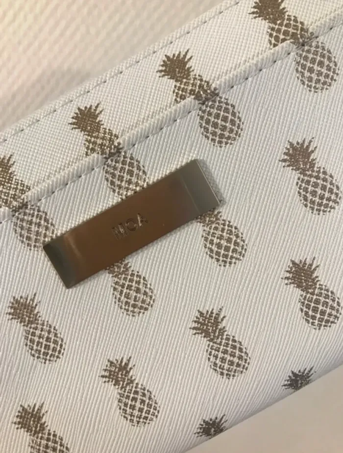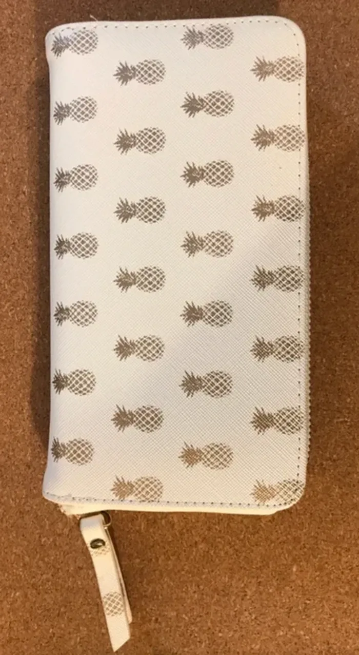 Porte-monnaie compagnon, blanc à motifs ananas. Neuf