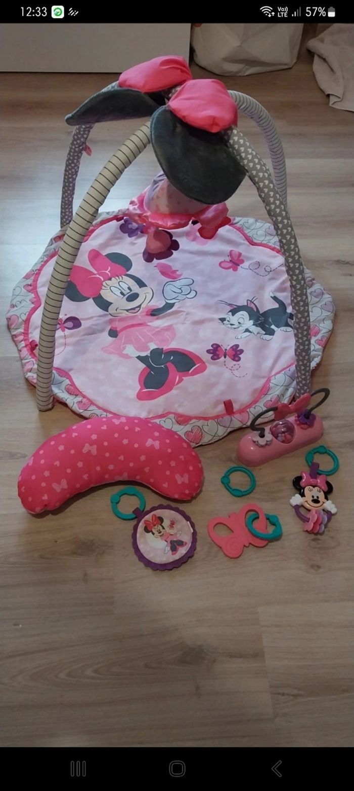 Vends tapis d éveil Minnie, avec tout ces accessoired. La fleur du milieu fait de la musique.