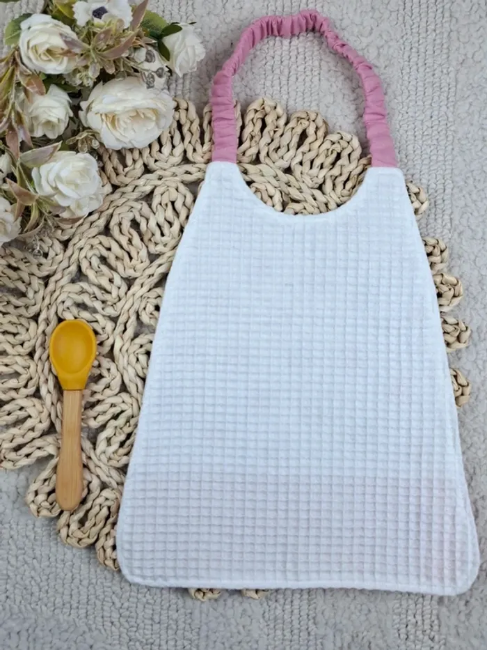 dimension du bavoir : - Environ 31 cm de hauteur sur 26 de large - Idéal pour l'école, la crèche ou la maison - composition tissus 100 % coton et éponge nid d'abeille 100 % coton - Finitions surpiqûres. - Tour de cou extensible pour un enfilage facile - Lavage en machine à 40° après un premier lavage à 30 ° - ⛔️ Pas de sèche linge #LaboutiquedeCharliebavoirélastique