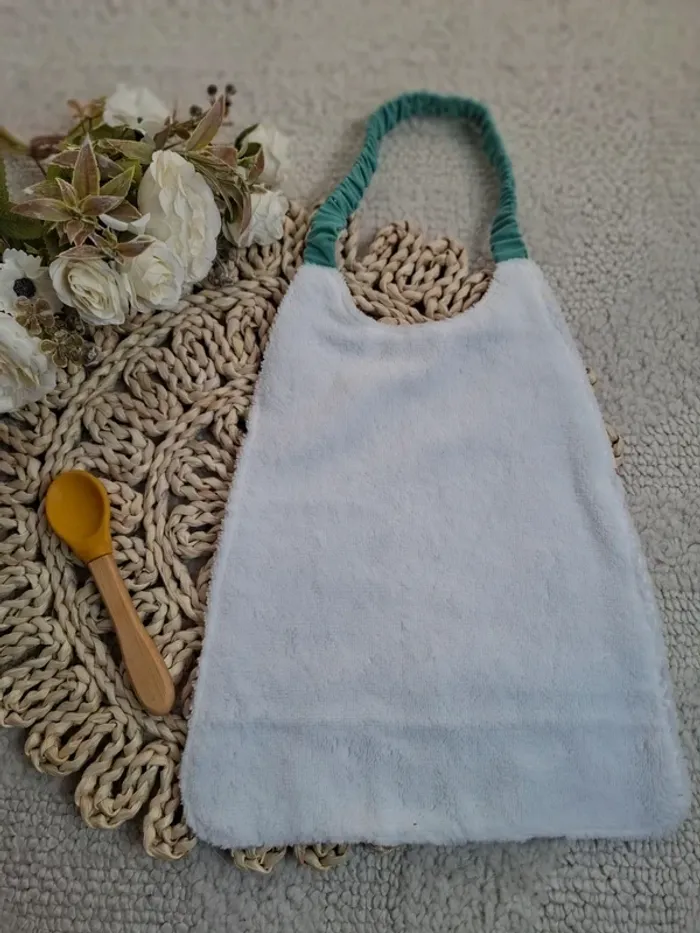 dimension du bavoir : - Environ 31 cm de hauteur sur 26 de large - Idéal pour l'école, la crèche ou la maison - composition tissus 100 % coton et éponge de bambou 40% Viscose De Bambou 40% Polyester 20% Coton - Finitions surpiqûres. - Tour de cou extensible pour un enfilage facile - Lavage en machine à 40° après un premier lavage à 30 ° - ⛔️ Pas de sèche linge #LaboutiquedeCharliebavoirélastique
