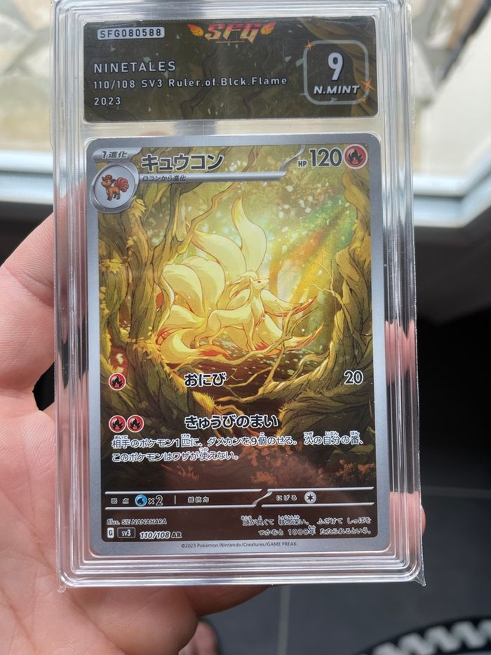 Pokemon carte gradé Feunard AR (sv3 110) 110/108 Ruler of the Black Flame SFG 9 Equivalent ccc / psa / pca / collect aura/ beckett Échange possible contre evolution prismatique 8.5 Evg aventure ensemble Ev10 team rocket Mega evolution ME01 Me02 Me2.5