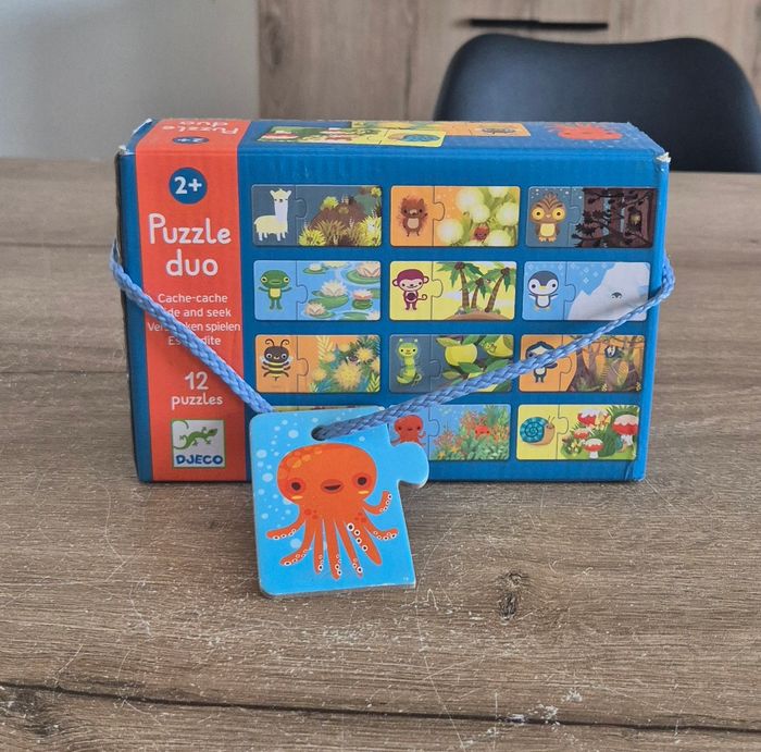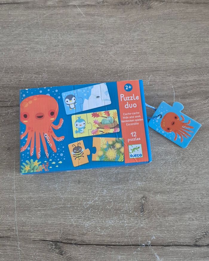 Puzzle duo Cache-cache Djeco Très bon état (juste un puzzle abîmé, voir photo)