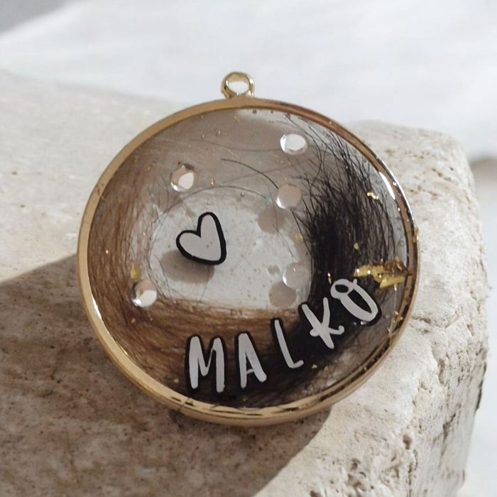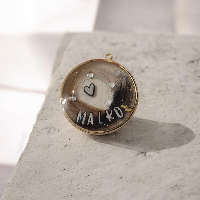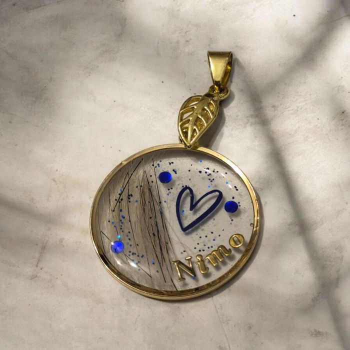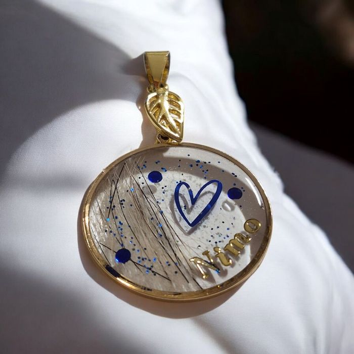 Un concentré d’amour à porter autour du cou ou à garder en souvenir. Ce pendentif artisanal renferme une mèche de cheveux (bébé, enfant, adulte) ou des poils de votre animal de compagnie. Chaque création est réalisée à la main avec soin et émotion, pour préserver un lien unique et intemporel. 💫 Caractéristiques : Pendentif plaqué or 18k (vendu sans la chaîne) Personnalisation possible : initiales ou prénom court Diamètre 3cm Choix du fond : transparent ou blanc nacré Option : paillettes ou petites fleurs séchées pour un rendu poétique Réalisé sur mesure à partir de vos mèches ou poils 🌸 Chaque bijou est unique — il reflète l’histoire et la tendresse du souvenir qu’il contient. 💌 Comment ça marche : 1️⃣ Contactez-moi avant de passer commande pour discuter de votre projet (ne passez pas commande de suite, le délai d'expédition risquerai d'être trop court en attendant que je réceptionne vos mèches). 2️⃣ Je vous communiquerai ensuite mon adresse pour l’envoi des mèches ou poils. 3️⃣ Dès réception, je vous préviendrai afin que vous puissiez finaliser la commande sur Etsy. 4️⃣ Je confectionnerai votre pendentif avec soin et vous enverrai des photos avant l’expédition. 5️⃣ Vous recevrez votre bijou accompagné des éventuelles mèches/poils restants. ⚠️ Conseils d’entretien : Évitez le contact avec l’eau, les parfums ou les produits chimiques afin de préserver l’éclat du bijou. 🎁 Idée cadeau : Un bijou plein d’émotion pour célébrer une naissance, rendre hommage à un être cher ou garder près de soi son animal adoré. « Chaque pendentif est fait main : chaque pièce est unique et peut présenter de légères variations, comme de fines bulles ou une différence minime par rapport aux photos. »