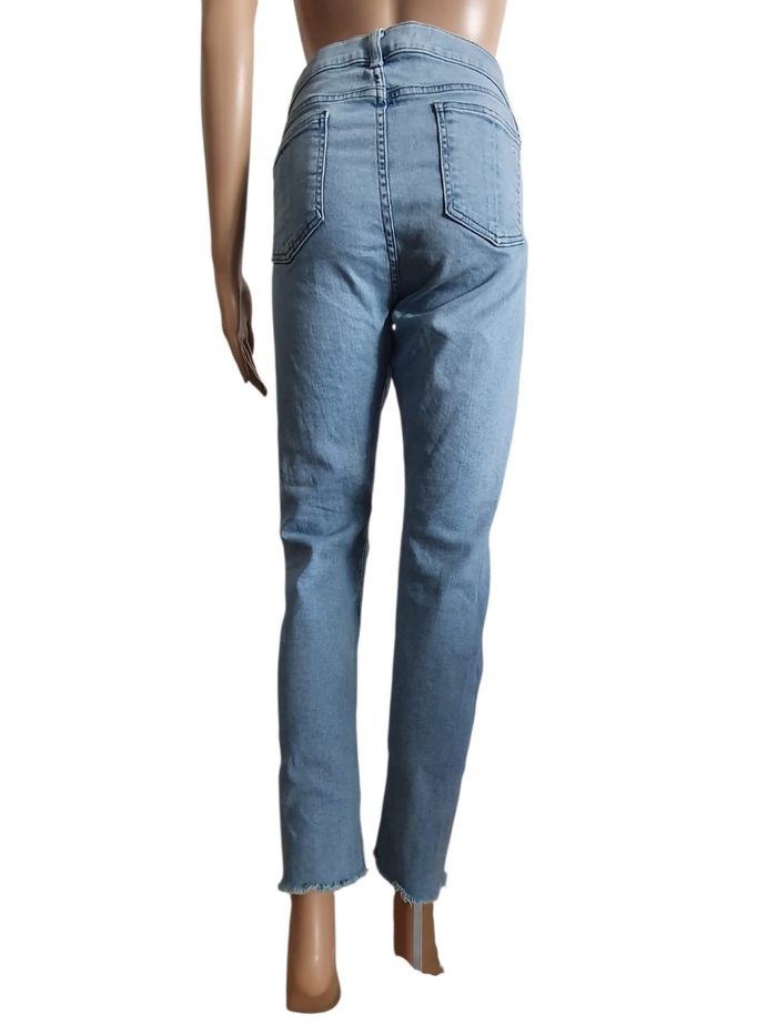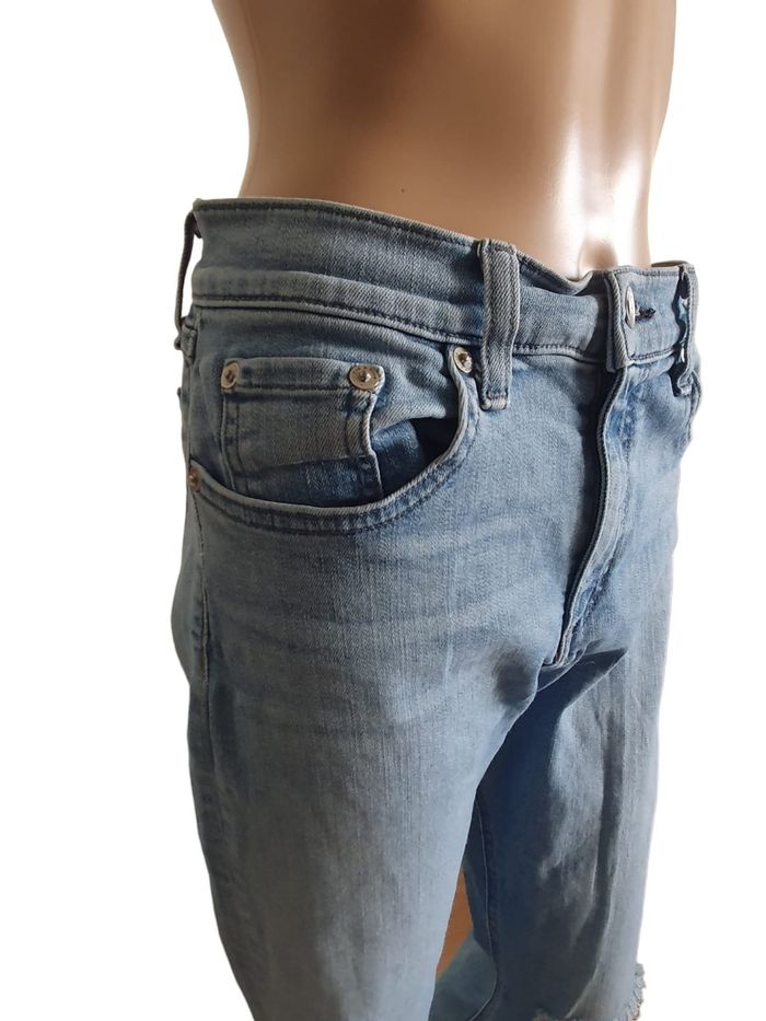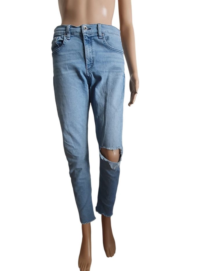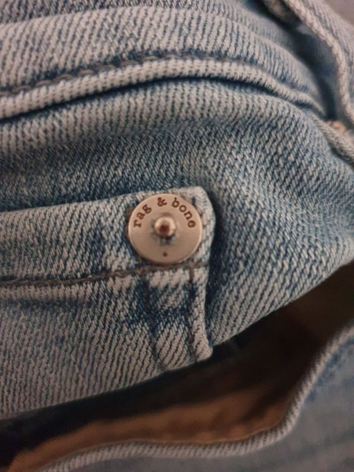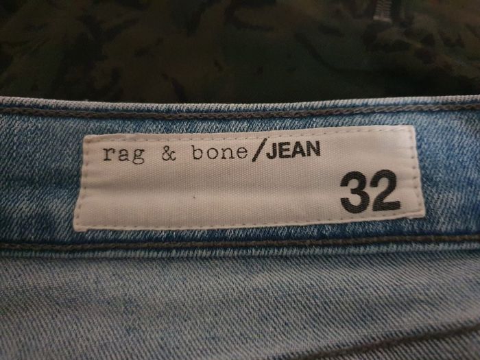 Apportez une touche de cool new-yorkais à votre garde-robe avec ce jean Iconique de la maison Rag & Bone. Le modèle Lena est l'équilibre parfait entre le savoir-faire d'une grande marque américaine et une esthétique rebelle-chic. 💎 Ce n'est pas qu'un simple jean , c'est une pièce de créateur ! Son délavage bleu clair lumineux et ses finitions volontairement "destroyed" (déchirure au genou et bords francs) ont été travaillés artisanalement pour offrir un aspect vintage authentique dès le premier jour.  💙 Coioe Slim fit ajustée,  silhouette moderne. ❤️ Finitions "Distressed" Genou ouvert et ourlets effilochés d'origine (Rew Hem). 💜  Broderie "rb" sur la poche arrière,  rivets et bouton central gravés au nom de la marque,  signes d'authenticité.  💛 Confort Premium : Toile denim haute densité avec 2% d'elasthanne pour une liberté de mouvement totale sans déformer la coupe. 📜 Marque : Rag & Bone Coloris : Lena (bleu délavé) Référence modèle : W1526K520LEN Taille: 32 (US) équivalent 40/42 (FR) Prix boutique : env. 275€ 🧶 98% coton, 2% Elasthanne  📏 Pour vous assurez qu'il vous ira parfaitement fiez-vous à la grande sagesse de Maître Ruban ⤵️  Taille : 41cm Longeur : 98cm Entrejambe : 73cm Cheville : 15cm Équivaut à un grand 40 où un petit 42. 🌟 Très bon état 🌟  Notez que les zones d'usure et les déchirures font partie intégrante du design de la marque.  📦 Envoi rapide et soigné