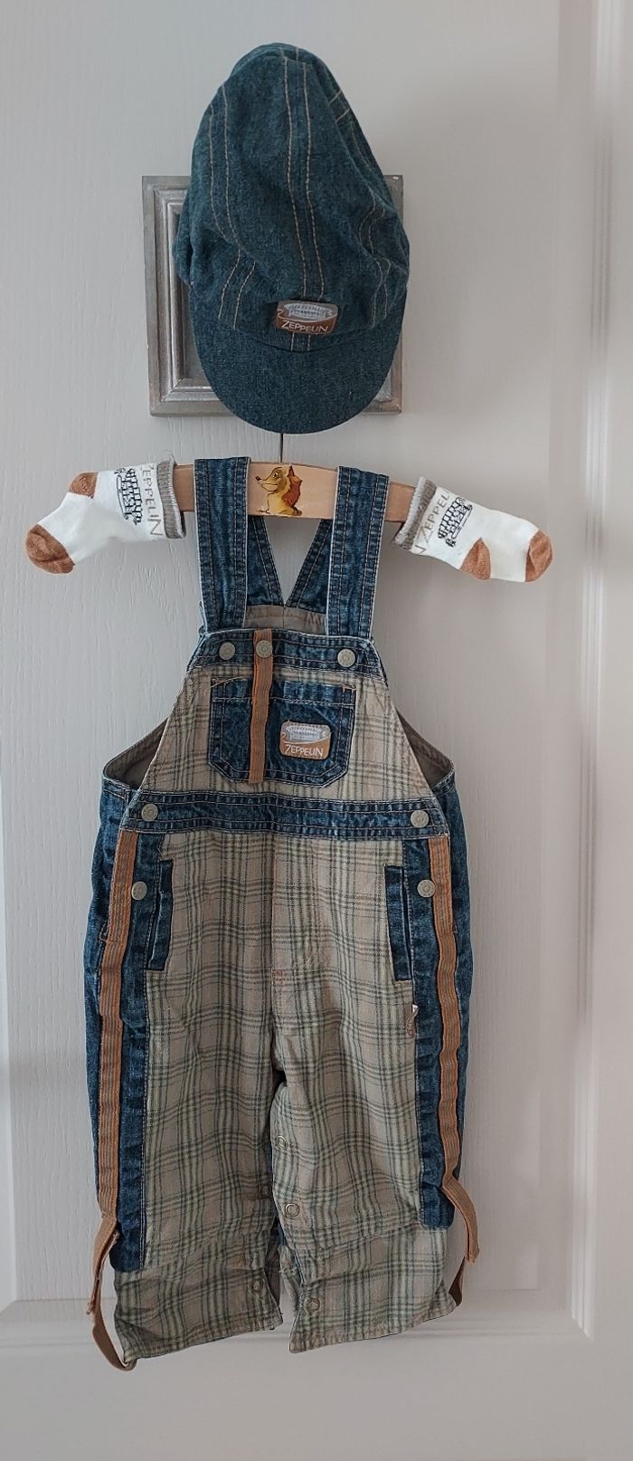 Salopette, casquette, chaussettes 12mois