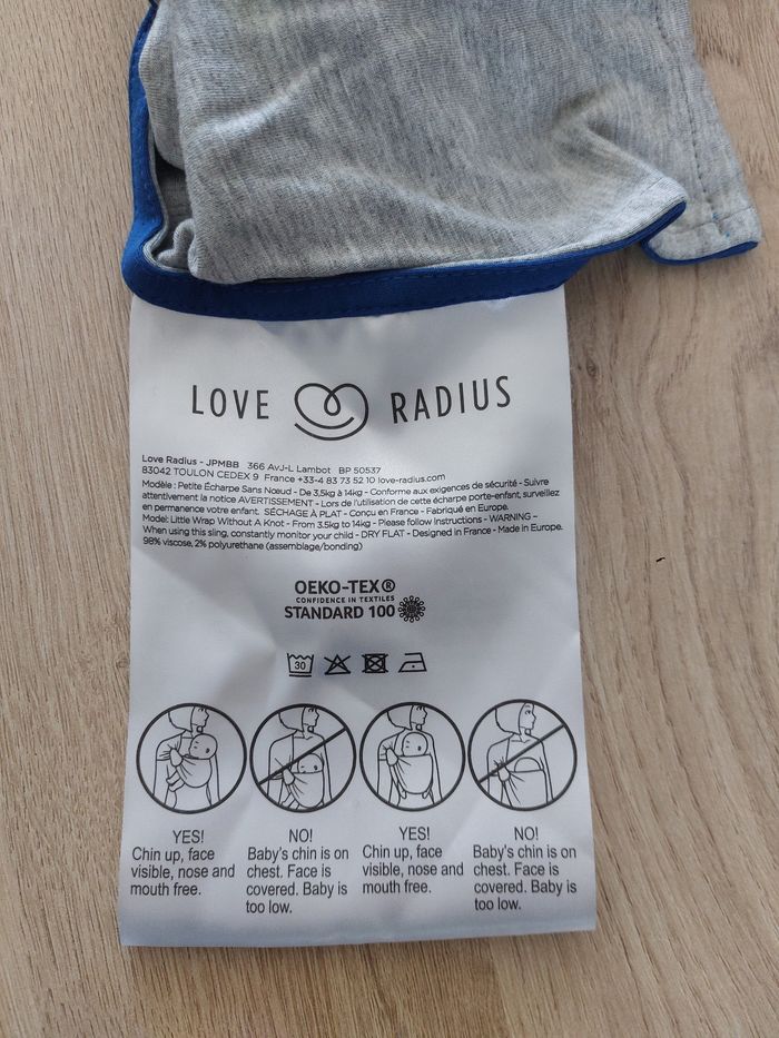 Écharpe sans nœud love radius Très peu utilisée Pour un bébé de 3,5 à 14kg