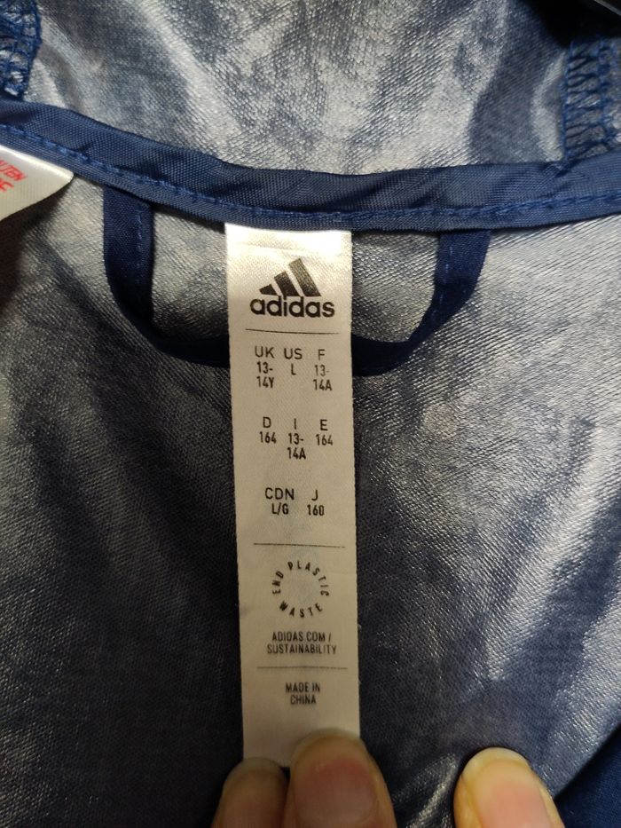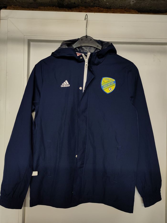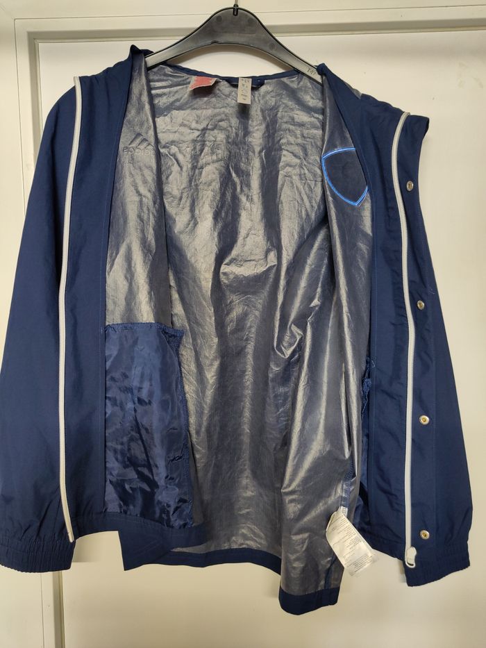 Veste coupe-vent/ pluie Imperméable Très légère Avec capuche 2 poches Marque Adidas Taille 13-14 ans = 164 cm Bleu marine Ecusson club foot Quasi jamais portée, État neuf (nom écrit derrière l'étiquette) #13ansclanis78500 #14ansclanis78500