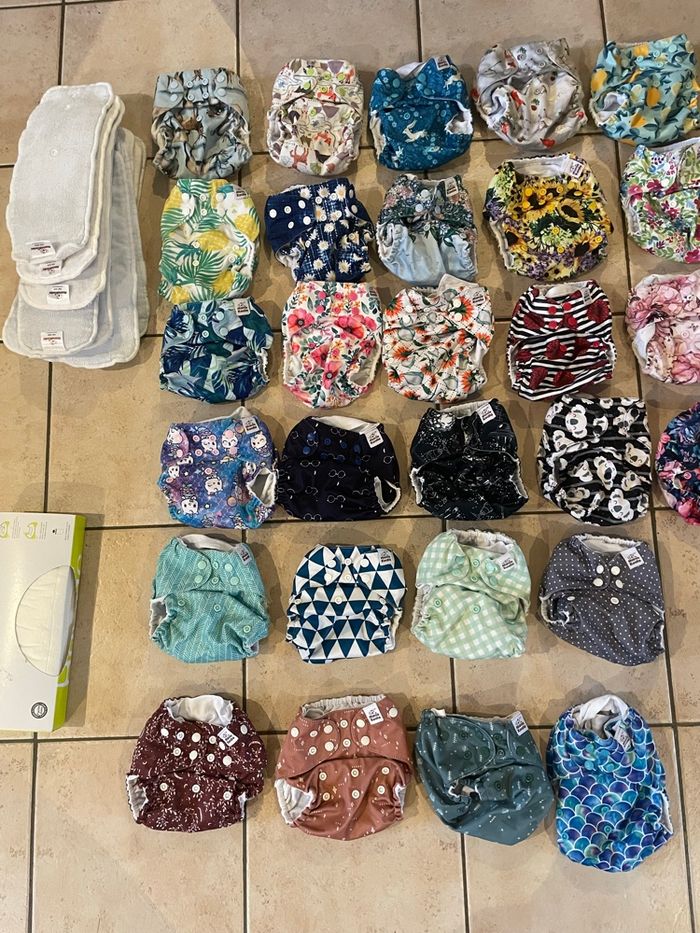 Lots de 28 couches mama koala 110€ de lot ou 4€ la couche N’hésitez pas si vous souhaitez des renseignements ou d’autres photos Ont servies pour 2 enfants Entretenues selon les reco Maison non fumeur