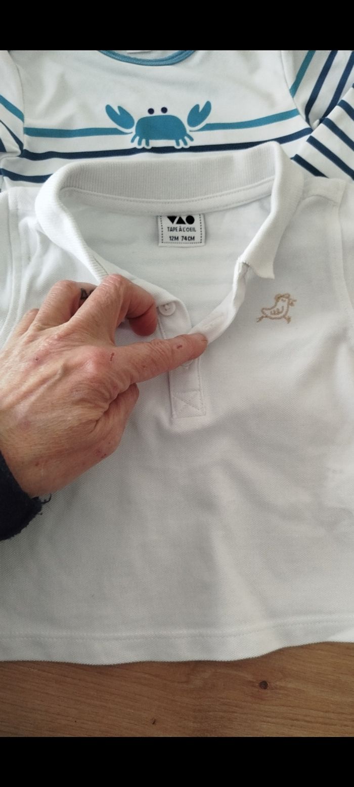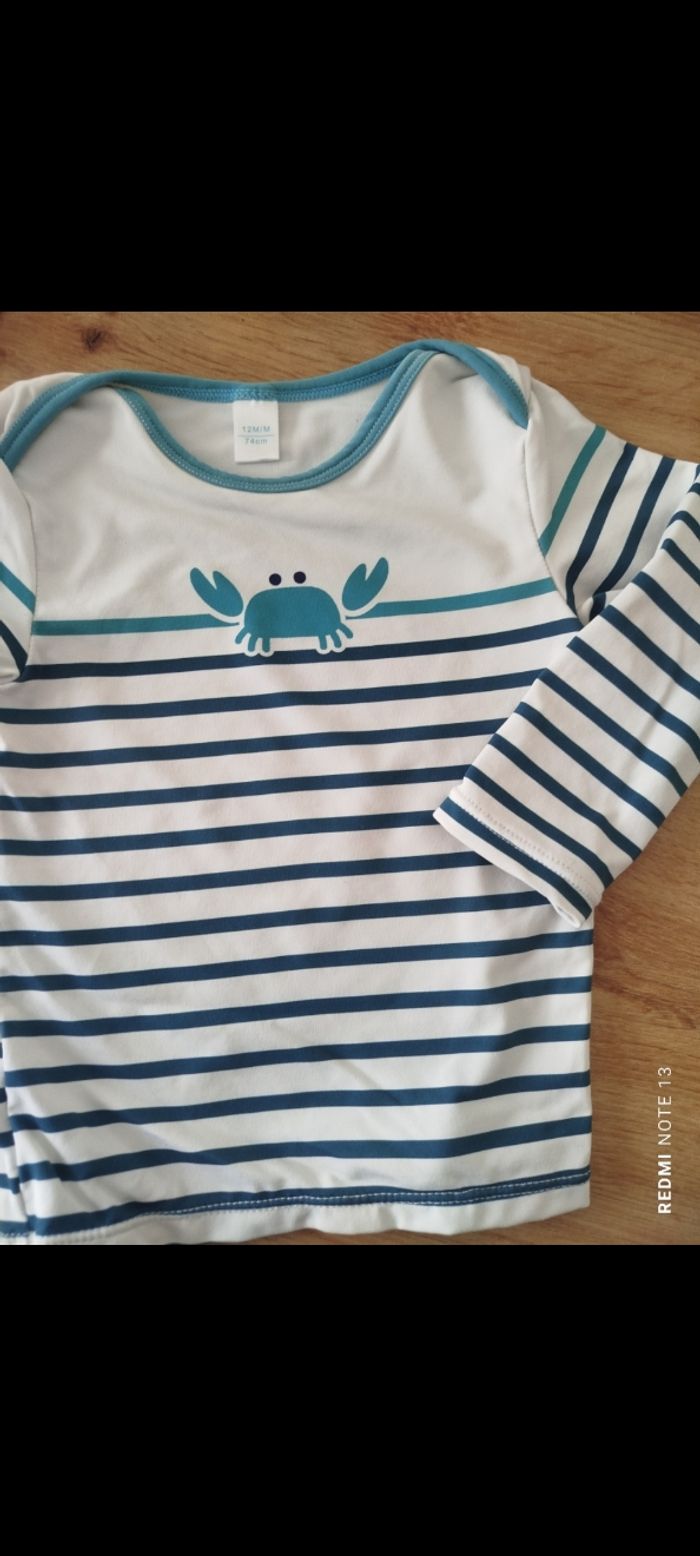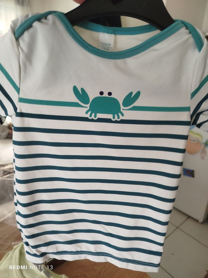 #kytie12moisgarcon. 3 articles un beau dimanche cours de marque Kiabi baby un polo manches courtes de marque tape à l'oeil et un t-shirt anti-UV maillot de bain manche longue de marque obaibi en état neuf 40/44