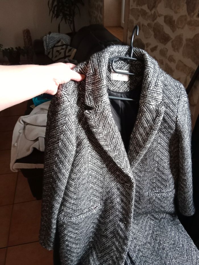 Manteau femme taille L, longueur de 96 cm, mesure de épaule à épaule environ 45 cm en très bon état marque Etam