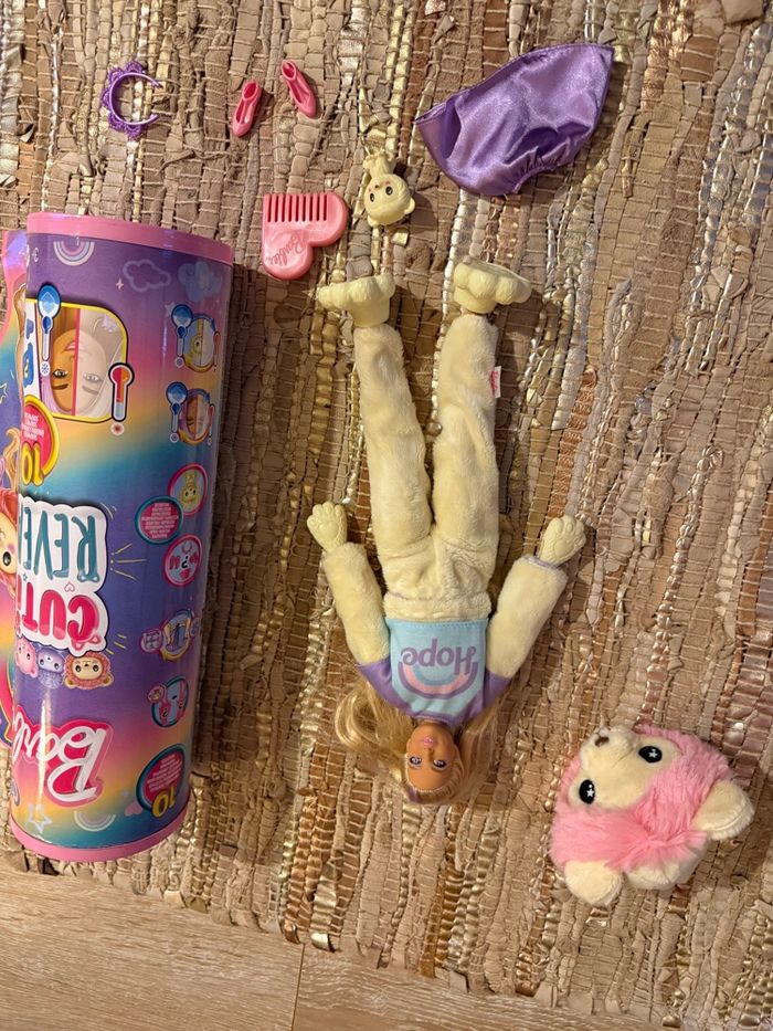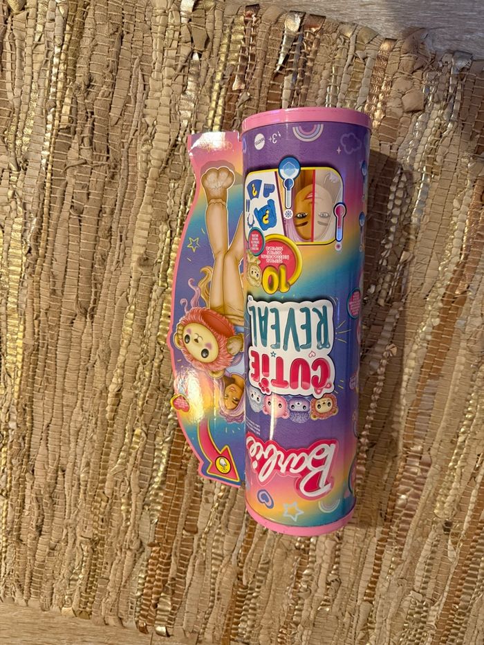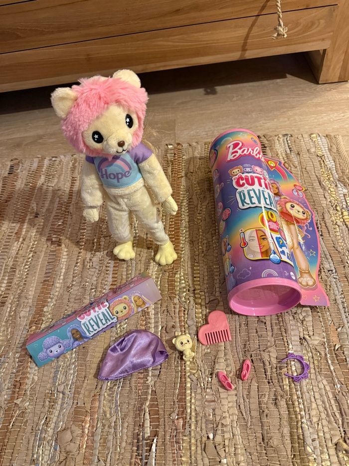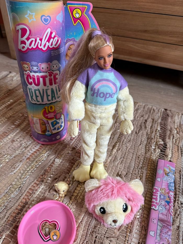 Barbie cutie reveal modèle Lion Avec ses accessoires Pull réversible Très bon état Dans sa boîte d’origine