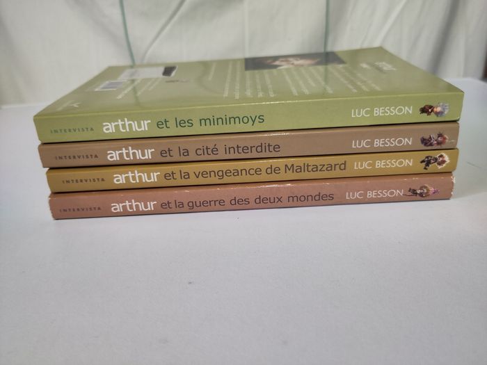 Lot 4 tomes Arthur et les Minimoys Arthur et la cité interdite La vengeance de Maltazard La guerre des deux mondes Luc Besson Ed. Intervista 22 x 14,5 cm Idéal 9-12 ans En bon état (un seul coin très légèrement abîmé) Prix d'origine 12€ par livre. #livresdvdclanis78500