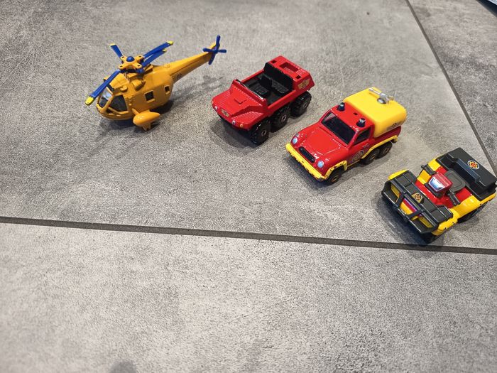 Lot de jouets sam le pompier - 4 petites voitures (hydrus venus Wallabie et Mercure) - Elvis, jet ski juno et commandant Steele - agent malcom sa moto et sam le pompier - livre alerte sur l' île des dinosaures #samlepompier #jouetsamlepompier #livresamlepompier