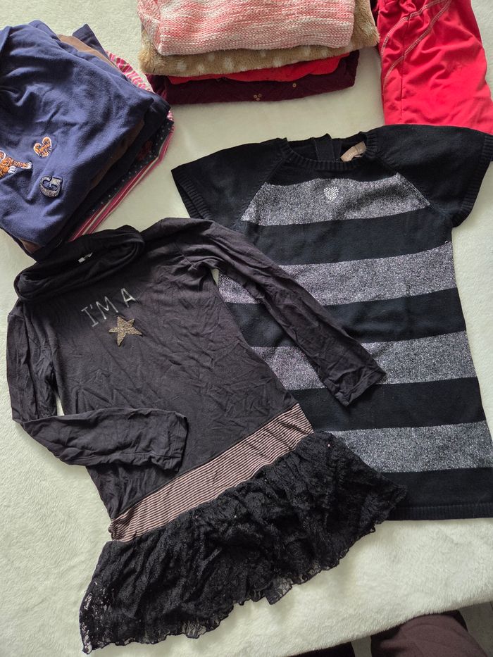 Lot hiver mi saison Comprend : 3 gilets / 4 pulls 2 leggings / 6 T-shirts ml 1 jupe / 2 robes 1 pyjama 5/6 ans