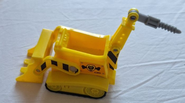 C'est un jouet qui représente un bulldozer de La Pat'Patrouille. Le chien sera envoyé avec. En très bon état. Peu servi