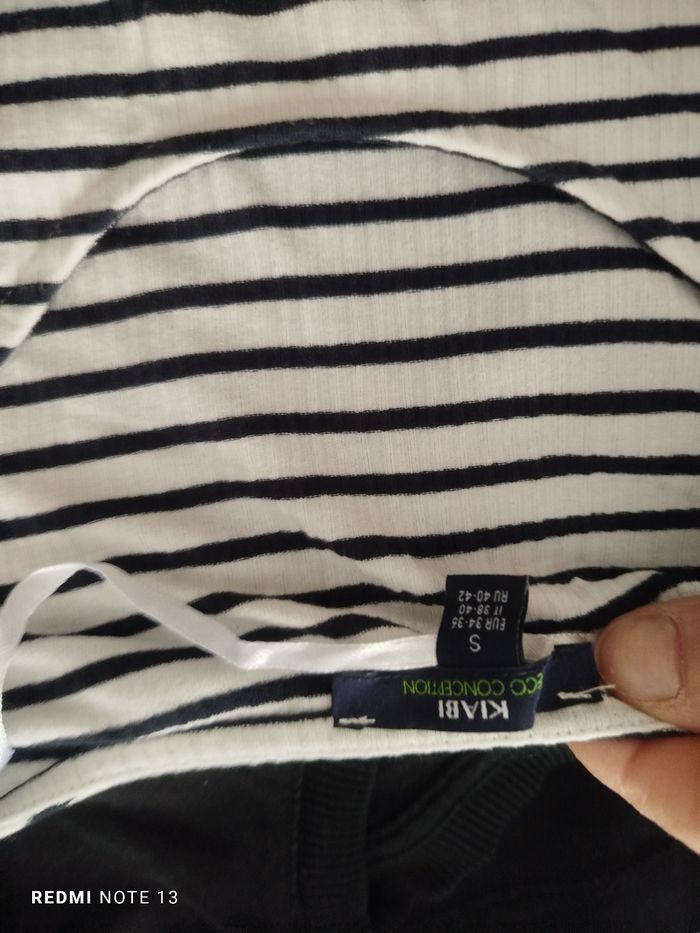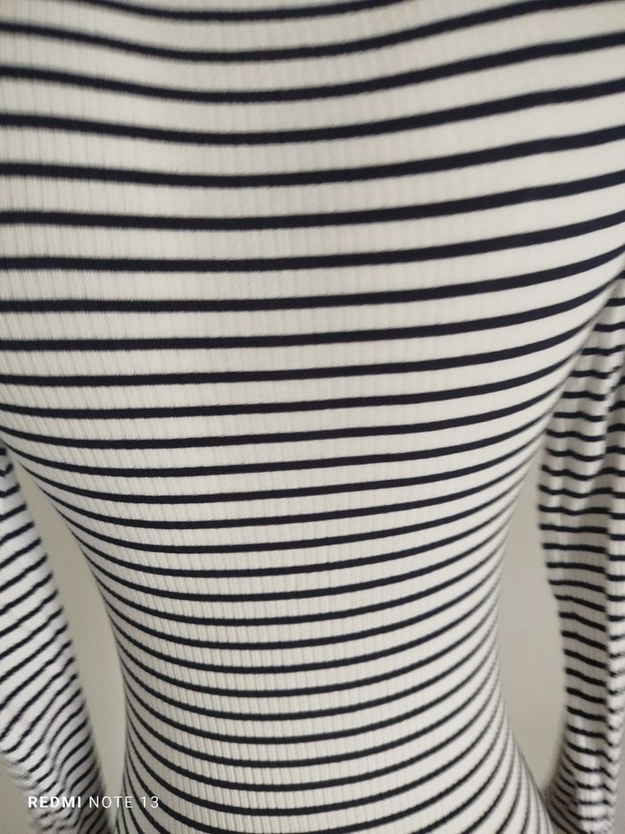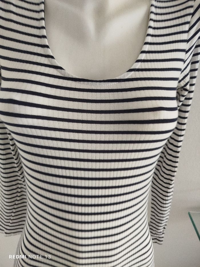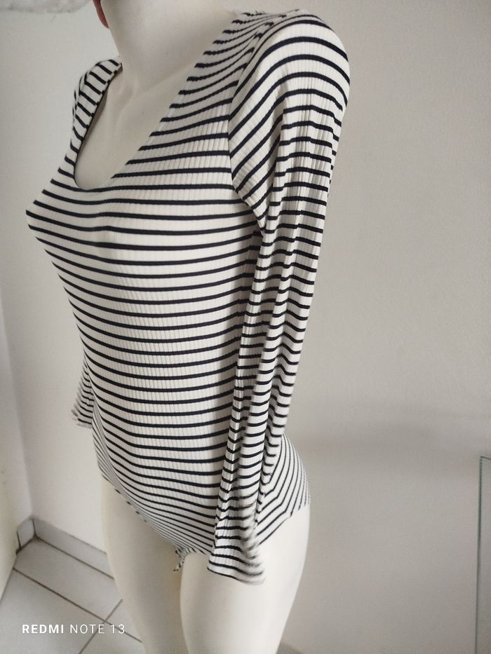 #kytieSfemme. Body manche longue taille S de marque Kiabi effet côtelé blanc et marine neuf mesure des épaules 36 cm des aisselles 36 cm hauteur 75 cm en coton polyester et élasthanne ref 4048