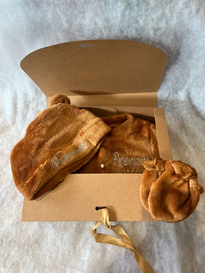 Taille 3 mois. Neuf Pyjama tout doux avec bonnet et moufles. Vendu avec la boîte Me contacter pour toute question.