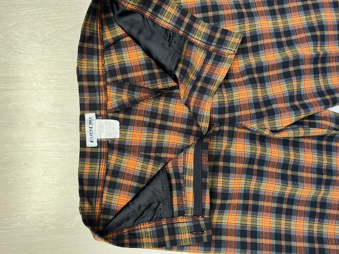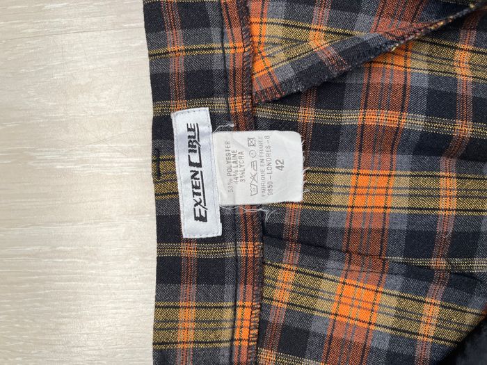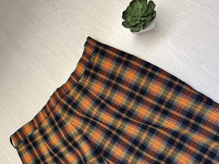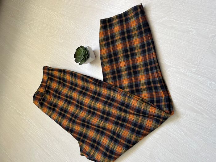 Je vends ce superbe pantalon à motif carreaux / tartan dans les tons orange, noir et gris. Une pièce vintage au caractère affirmé, parfaite pour l’automne ou pour dynamiser une tenue sobre. • Marque : Extern Cible • Taille : 42 • Coupe : Droite / cigarette, taille haute • État : Très bon état général, aucune tache ni trou, couleurs bien vibrantes Détails : • Motif tartan orange, noir et gris • Passants pour ceinture • Fermeture bouton + braguette • Poches latérales • Matière agréable avec une belle tenue Conseil style : Parfait pour un look rétro 90s, dark academia ou avec un perfecto en cuir et des bottines pour un style rock. 📦 Envoi rapide et soigné ✨ Réduction sur les lots — n’hésitez pas à parcourir ma sélection vintage