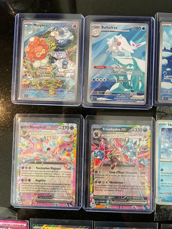Lot de 10 cartes de la serie ev08 étincelles déferlantes - Morpheo forme solaire AR 195/191 - Balbaleze AR 201/191 - Obalie AR 199/191 - hexagel stamp flocon holo cosmos 047/191 - recherche d’énergie Pro 176/191 tech - Nymphali ex 086/191 - trioxhydre ex 119/191 - Latias ex 076/191 - milobellus ex 042/191 - Fulgulairo ex 068/191