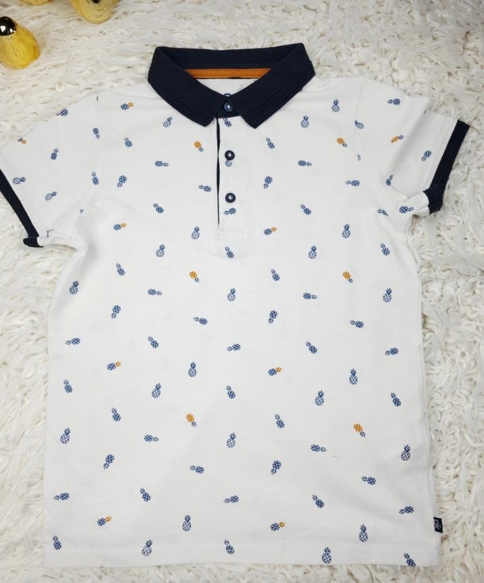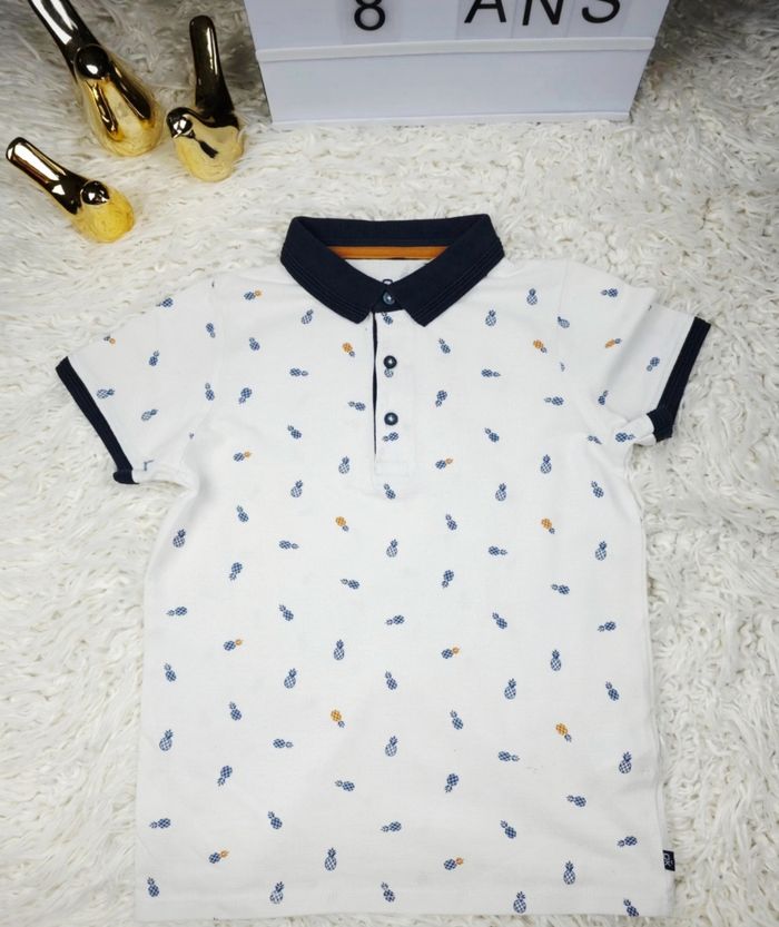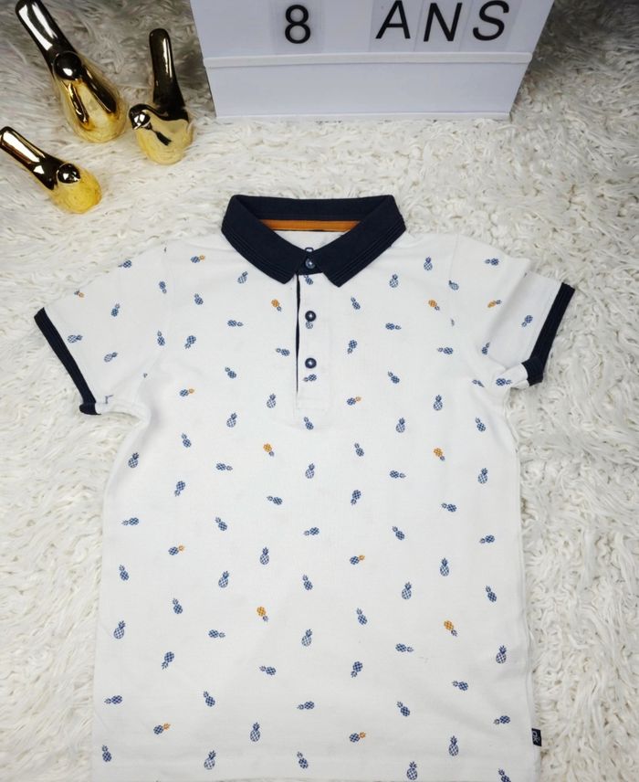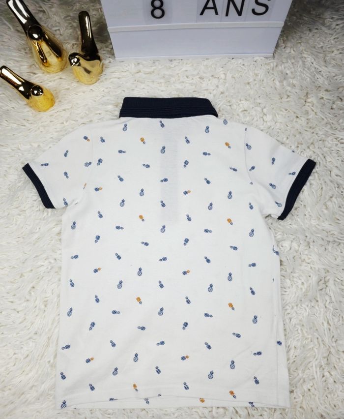 Polo manches courtes en piqué de coton blanc à motifs ananas Garçon taille 8 ans marque Okaidi 🎸