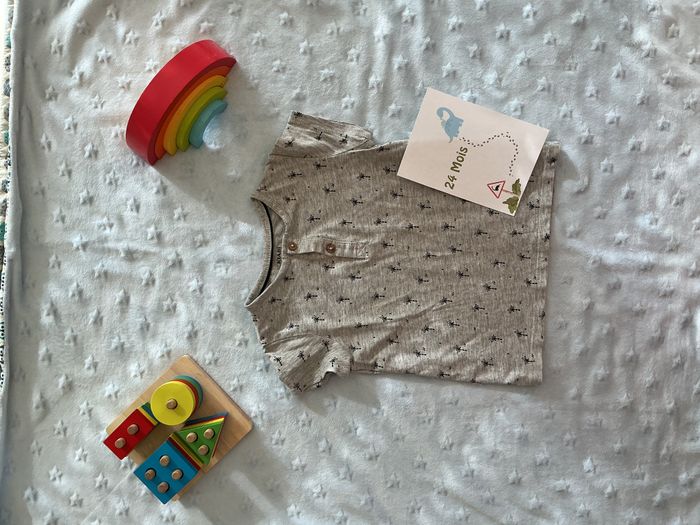 teeshirt manches courtes gris motifs palmiers 24 mois kiabi - photo numéro 5