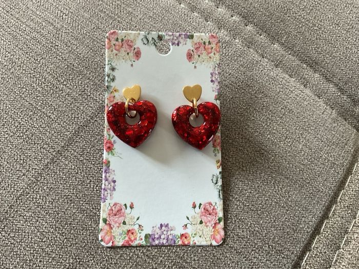 Boucles d’oreilles en résine Attaches en acier inoxydable Hauteur totale de la boucle d’oreille : 2,6 cm environ Légère et agréable à porter Pour plus de renseignements, n’hésitez pas à me contacter.