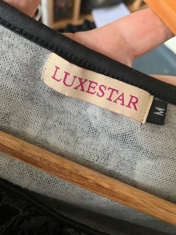 Je vends cette robe noire à motifs floraux de la marque Luxestar. - Type de produit : Robe - Marque : Luxestar - Taille : M - Couleur : Noir - Caractéristiques : Motifs floraux, Sans manches N'hésitez pas à me contacter pour plus d'informations.