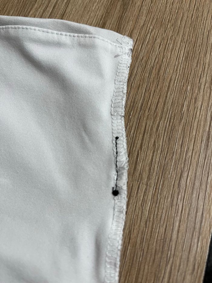 Article laver avant la mise en vente mais je conseille de le re laver quand même avant de le porter. Crop top peut porté et en très bon état! 1 seul défaut à signaler étiquette intérieur manquante cependant je ne ment pas sur les tailles. Vêtement prêt du corps et court. Idéal pour habiller un jeans ou un pantalon.