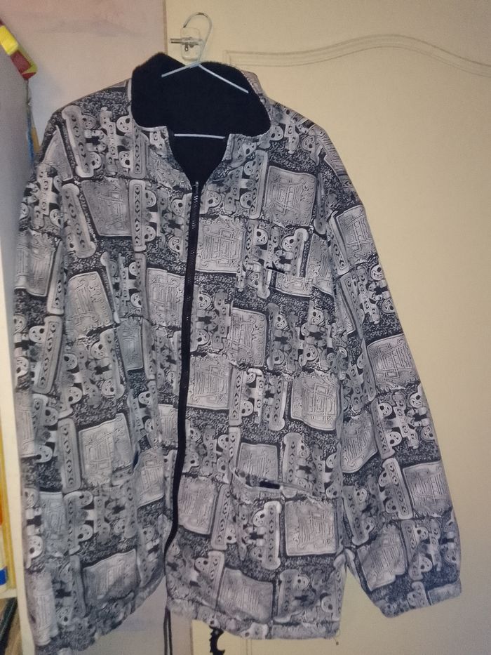 Blouson doublé avec fermeture, 2 poches, blanc, gris, noir, manches longues T54