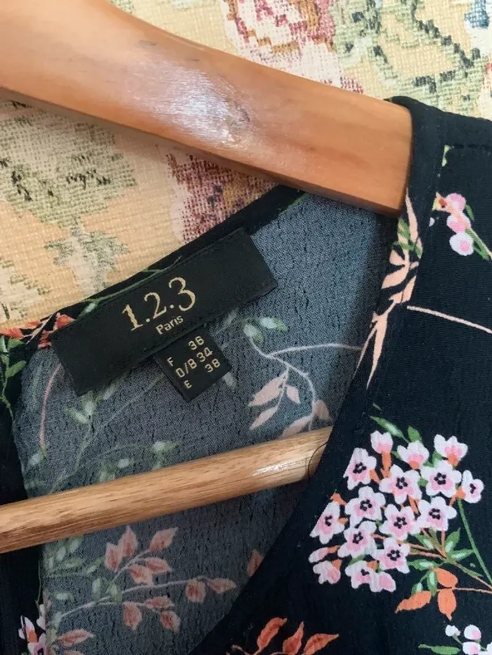Je vends cette combinaison noire à fleurs de la marque Maison 123. - Type de produit : Combinaison - Marque : Maison 123 - Taille : S - Couleur : Noir - Motif : Floral - Caractéristiques : Manches courtes, Fermeture éclair dans le dos N'hésitez pas à me contacter pour plus d'informations.