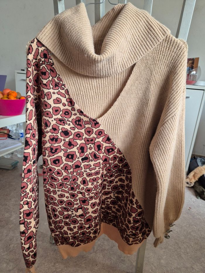 Pull décolleté avec capuche qui fait col roulé