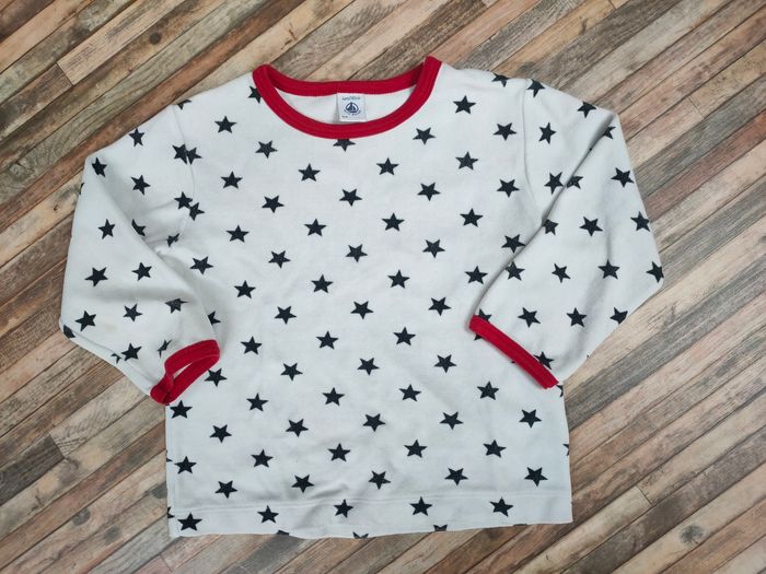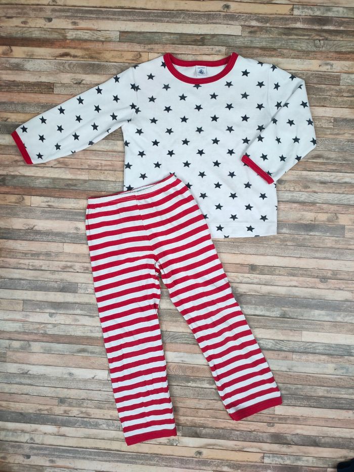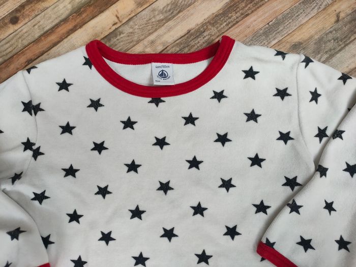 Joli lot de 2 pyjamas velours tout doux et coton Petit Bateau et marque allemande. Rayures et motif étoiles. Taille 4 ans