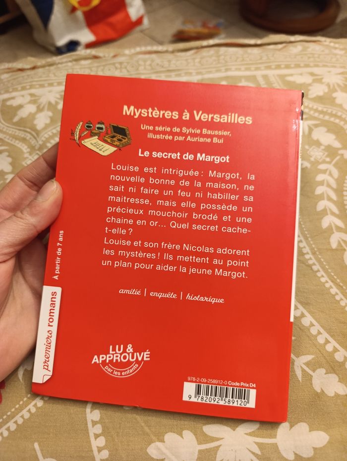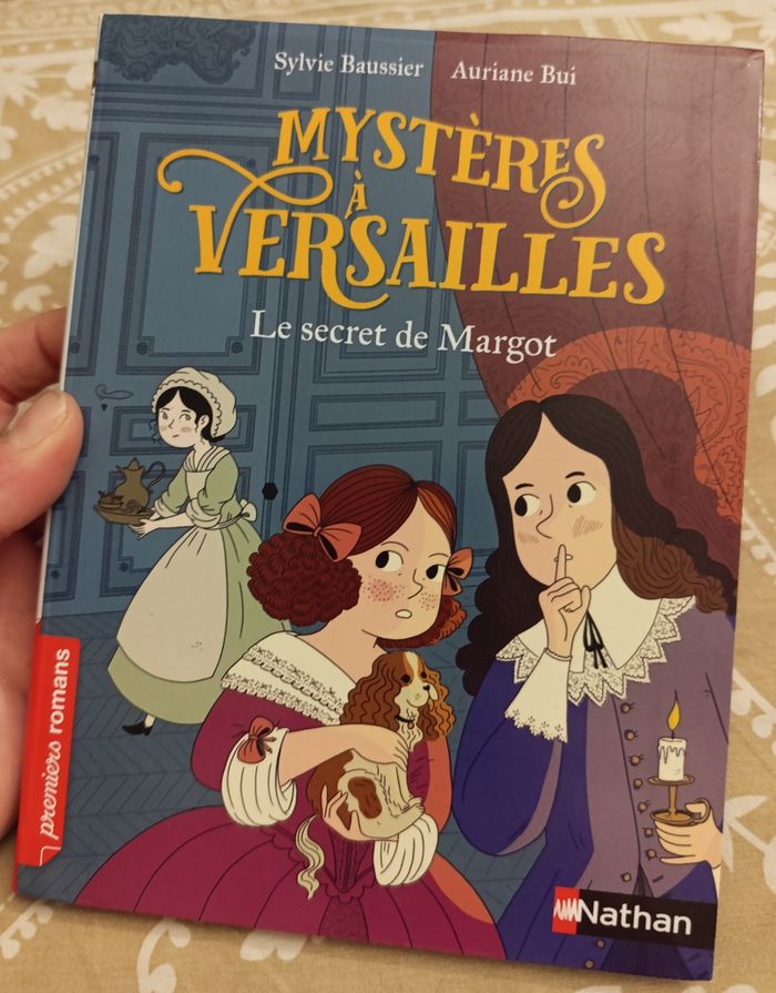 Embarquez pour Versailles à l'époque du Roi Soleil ! Un roman illustré pour les enfants de 7 à 11 ans, facile à lire tout seul et à comprendre. Une histoire rythmée et passionnante qui donne vraiment envie de lire. L'histoire : Louise est intriguée : Margot, la nouvelle bonne de la maison, ne sait ni faire un feu ni habiller sa maîtresse. Par contre, elle possède un mouchoir brodé et une chaine en or... Louise et son frère Nicolas adorent les mystères ! Ils mettent au point un plan pour élucider celui-ci. Pourront-ils aider la jeune Margot, qui porte un lourd secret ? Un roman historique pour les enfants de 7 à 11 ans.
