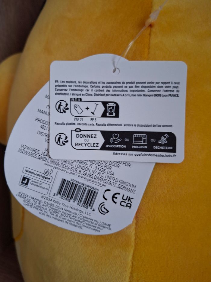 Peluche neuve, emballé dans un dac en plastique. Maison non fumeurs sans animaux. Le charmant peluche de Squishmallows est parfait pour jouer et faire des câlins. Avec sa surface douce et accueillante, cet peluche apporte de la joie à chaque enfant. Peluche a un design charmant dans une couleur jaune vif dans la jolie figurine Pokémon Dragonite.