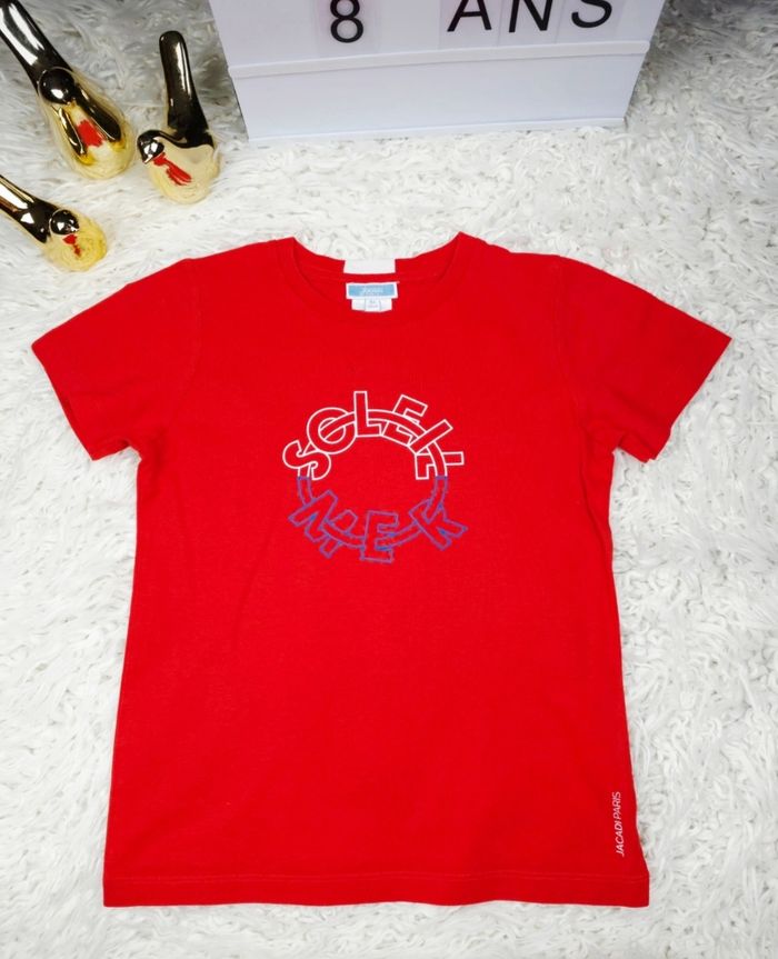 T-shirt manches courtes rouge imprimé " Soleil et Mer " Garçon taille 8 ans marque Jacadi 🎸 - photo numéro 1