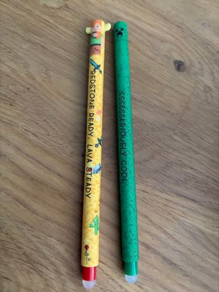 2 stylos kawaï thème Minecraft