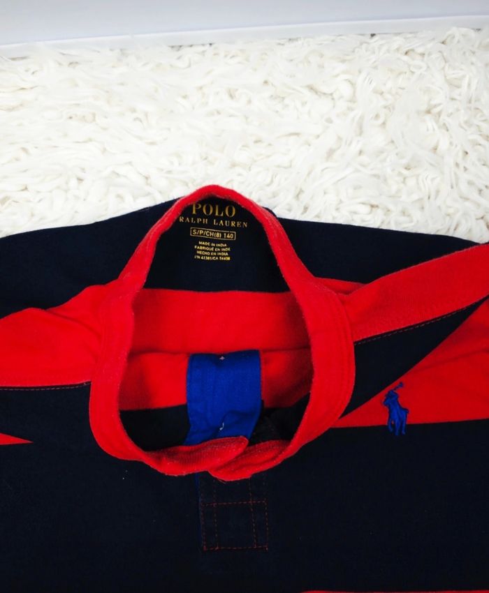 Polo à rayures henley rouge et marine Garçon taille 8 ans marque Ralph Lauren 🎸 - photo numéro 6