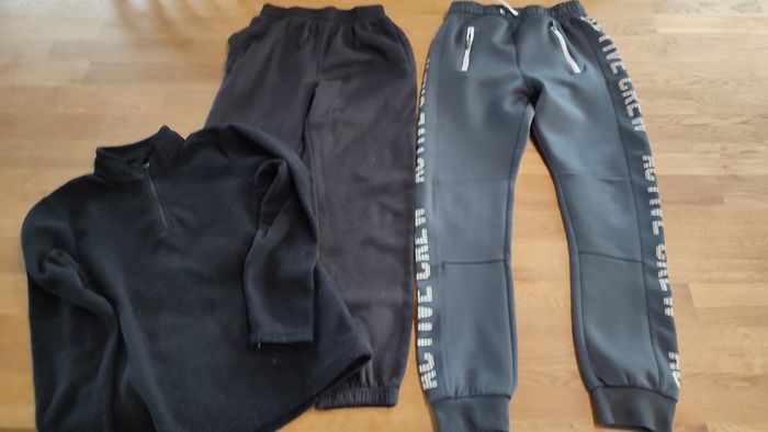 Lot garçon 10 ans: 2 joggings Ergee et Tissaia, 1 pull polaire Decathlon