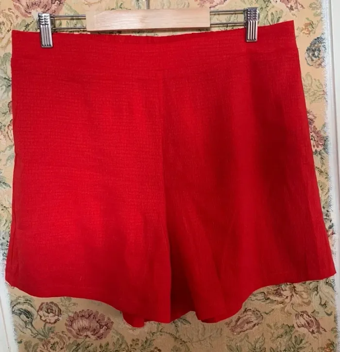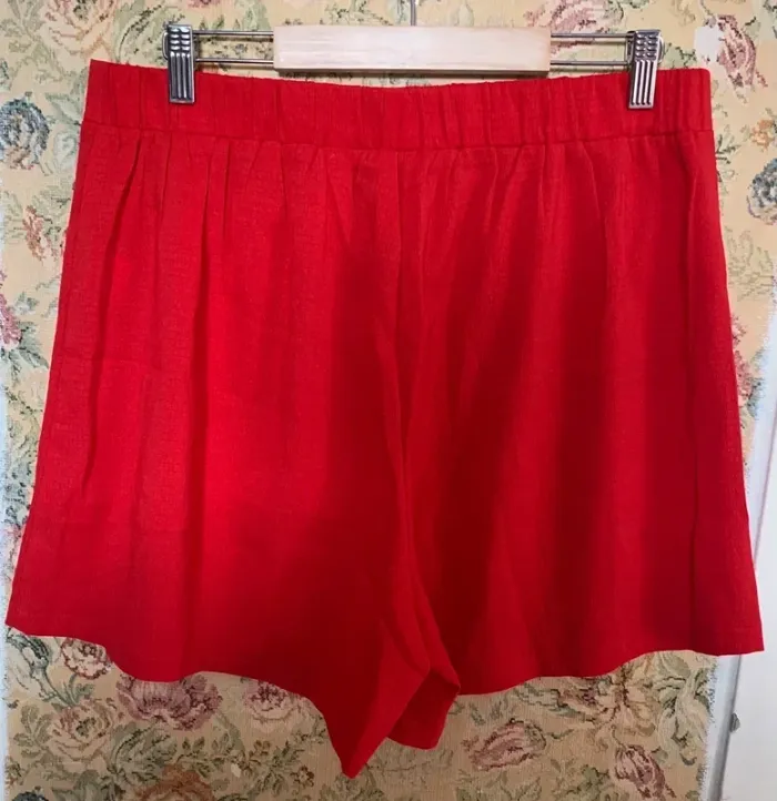 Je vends ce lot de 2 shorts femme. - Type de produit : Shorts - Taille : XL - Couleur : Rose pâle/Rouge - Condition : Très bon état N'hésitez pas à me contacter pour plus d'informations.